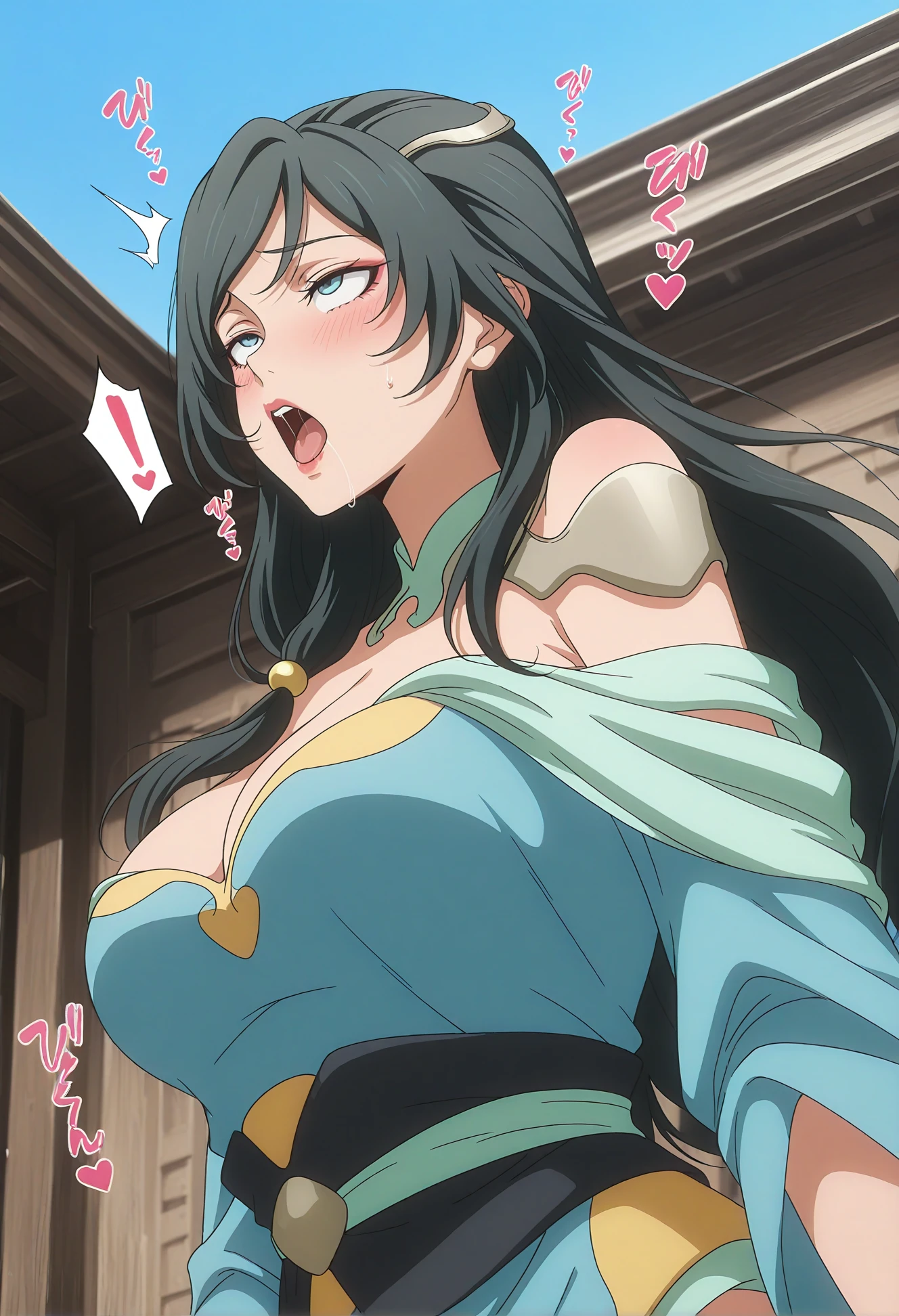 liner, black hair,long hair,hair ornament,blue eyes,red lips,