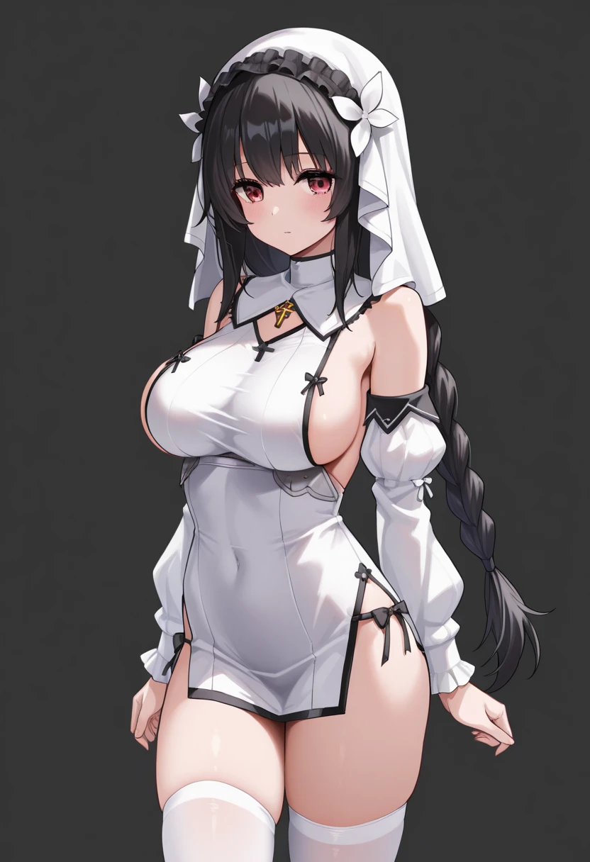 Alternate costume: "white dress, nun, white thighhighs, white sleeves, sideboob"