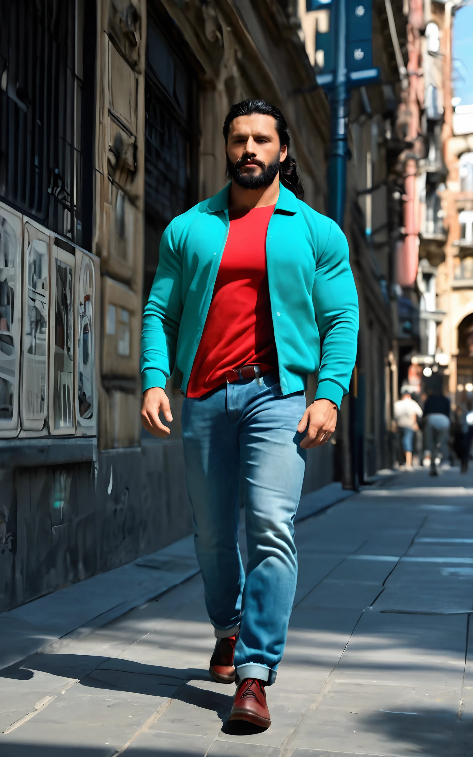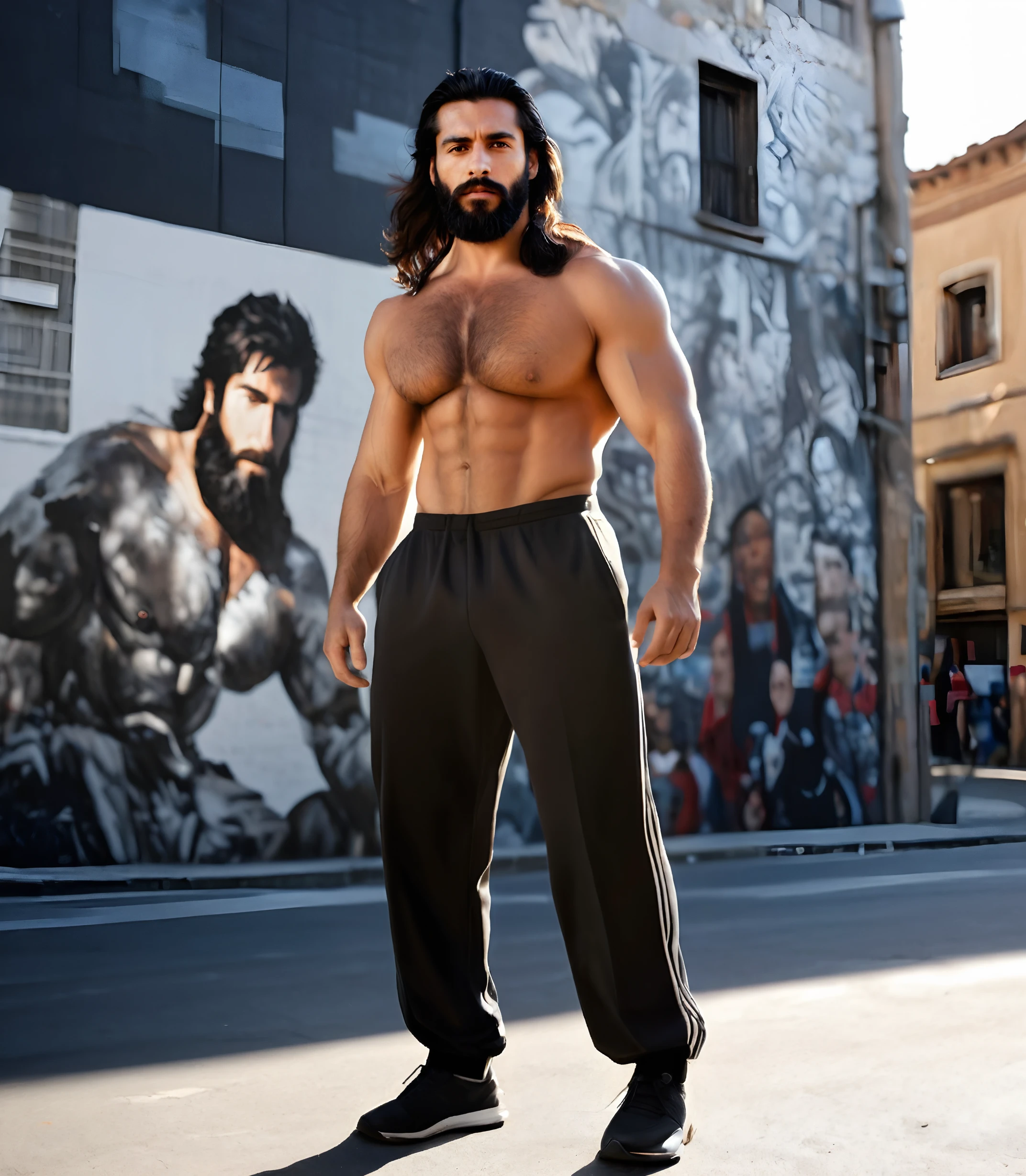 long hair,If you want him with the body he was conceived with (muscular athletic) write