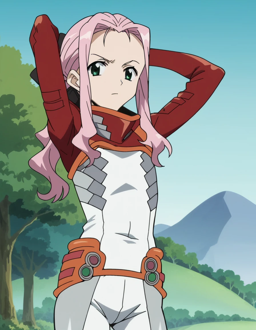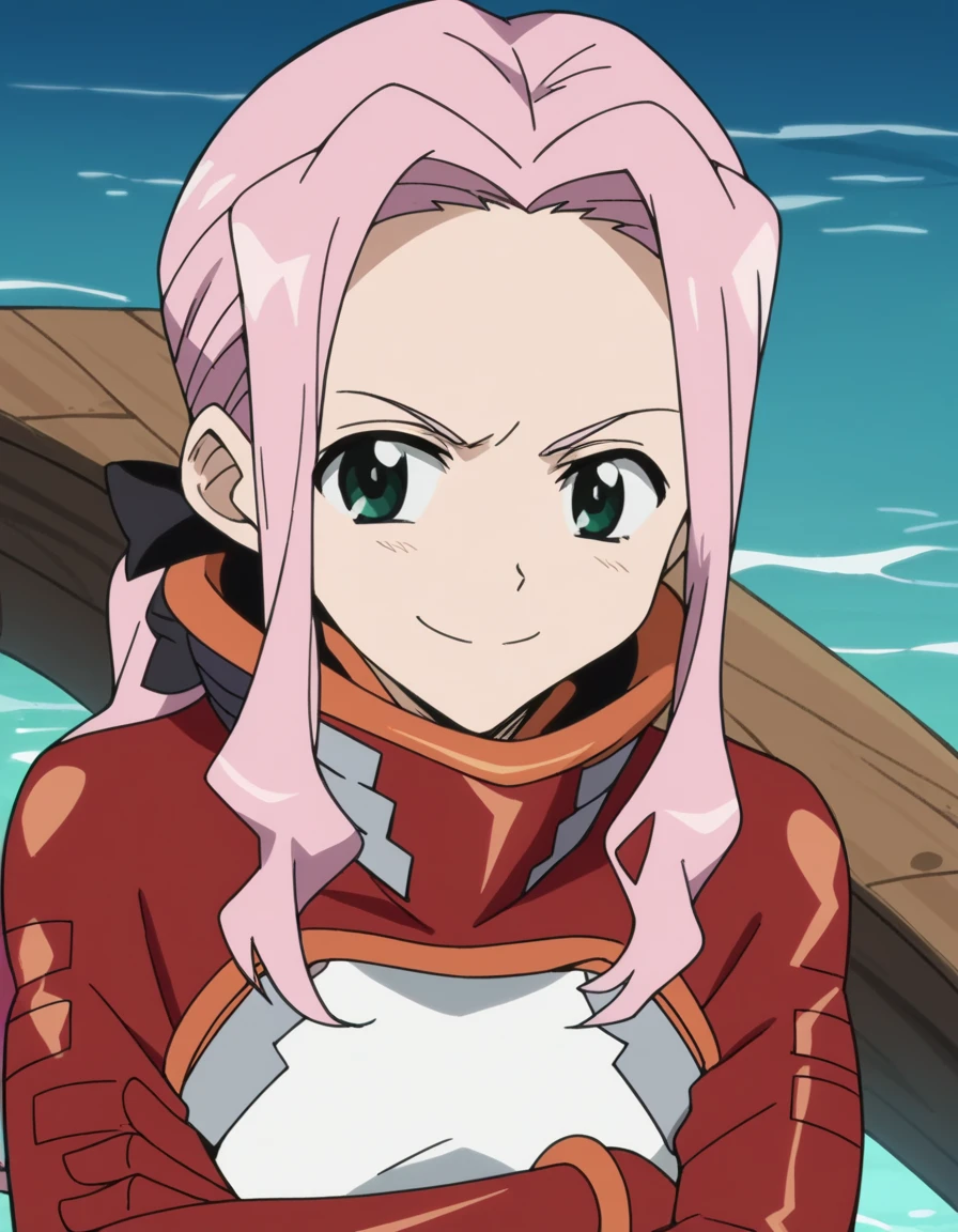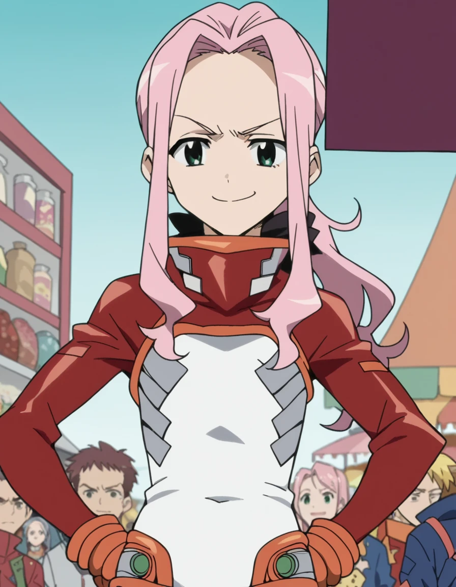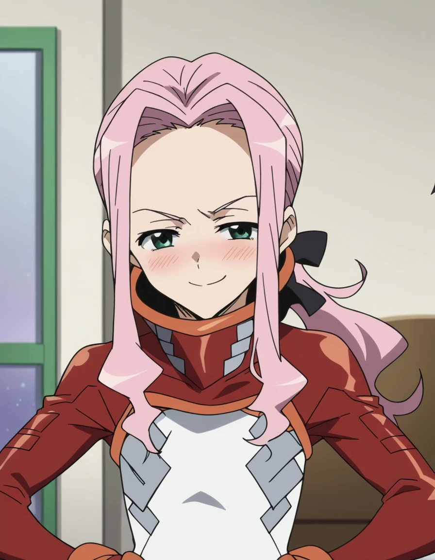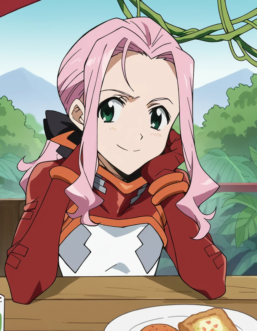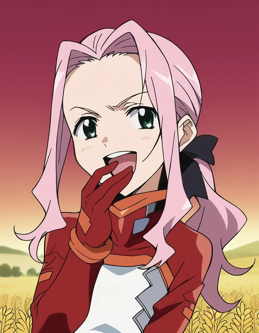 darry adai, long hair, green eyes, ponytail, pink hair, hair bow, black bow, anime screencap