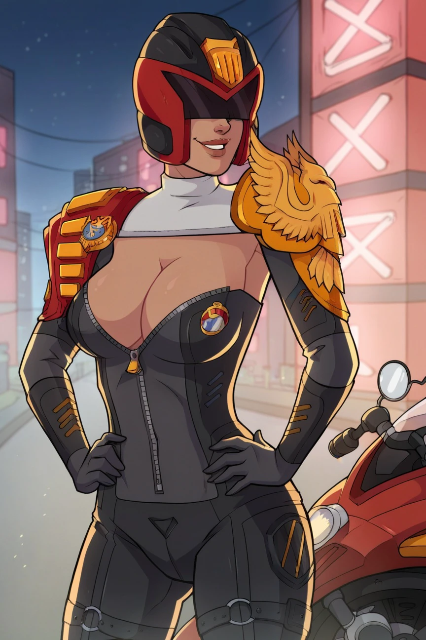 greaves, gloves, black gloves, shrug (clothing), long sleeves, bikini armor, black bikini, strapless, navel, turtleneck, cleavage, armor, helmet, shoulder armor, covered eyes, badge, pauldrons, strapless bra