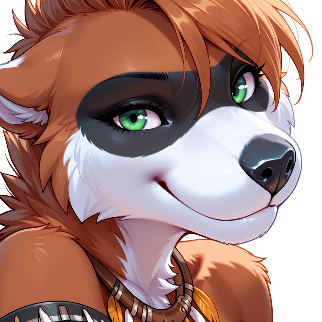 jerv, wolvar, wolverine, orangish-brown fur, white fur, green eyes, black mask marking