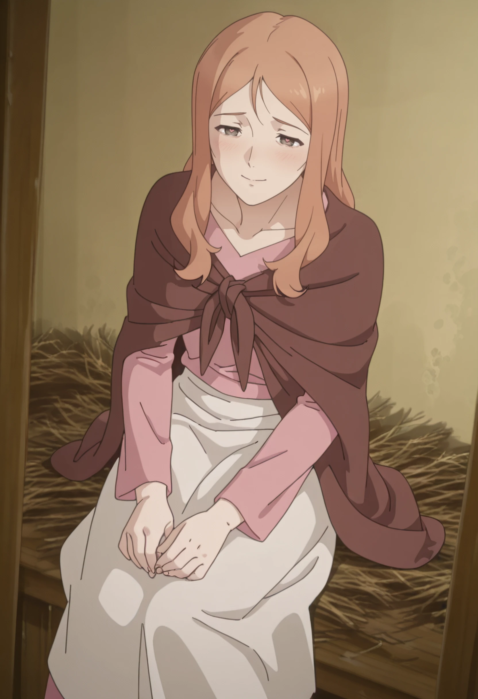 NoorsOutfit, brown cloak, cape, white skirt, pink shirt, long skirt, shawl, long sleeves,