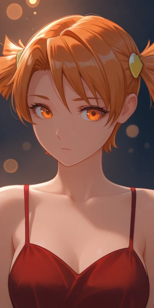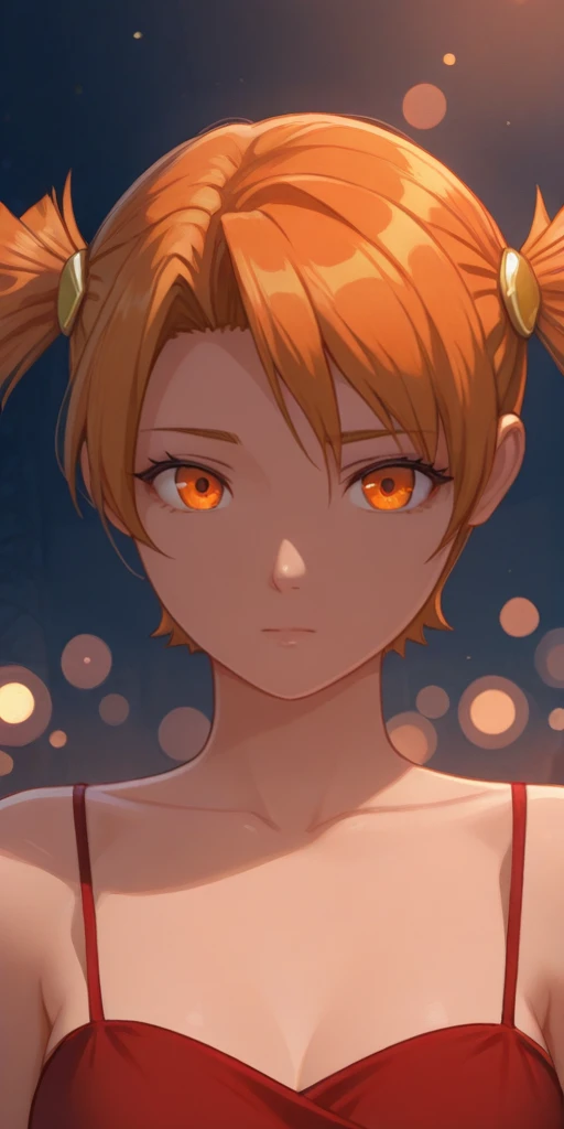 3) Formal dress. To do this, use the following three words: orange hair, orange eyes, short twintails, Red dress.