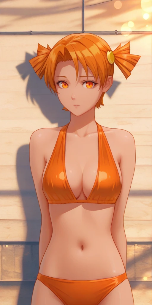 5) Swimsuit. To do this, use the following three words: orange hair, orange eyes, short twintails, Orange bikini.
