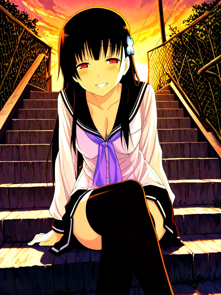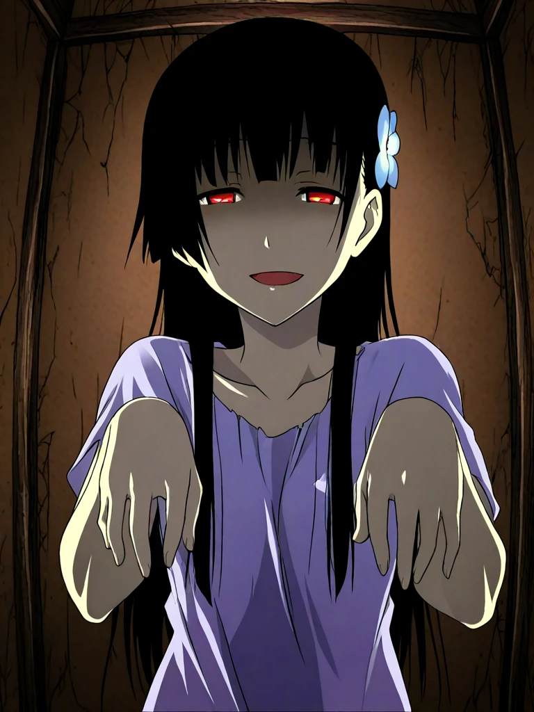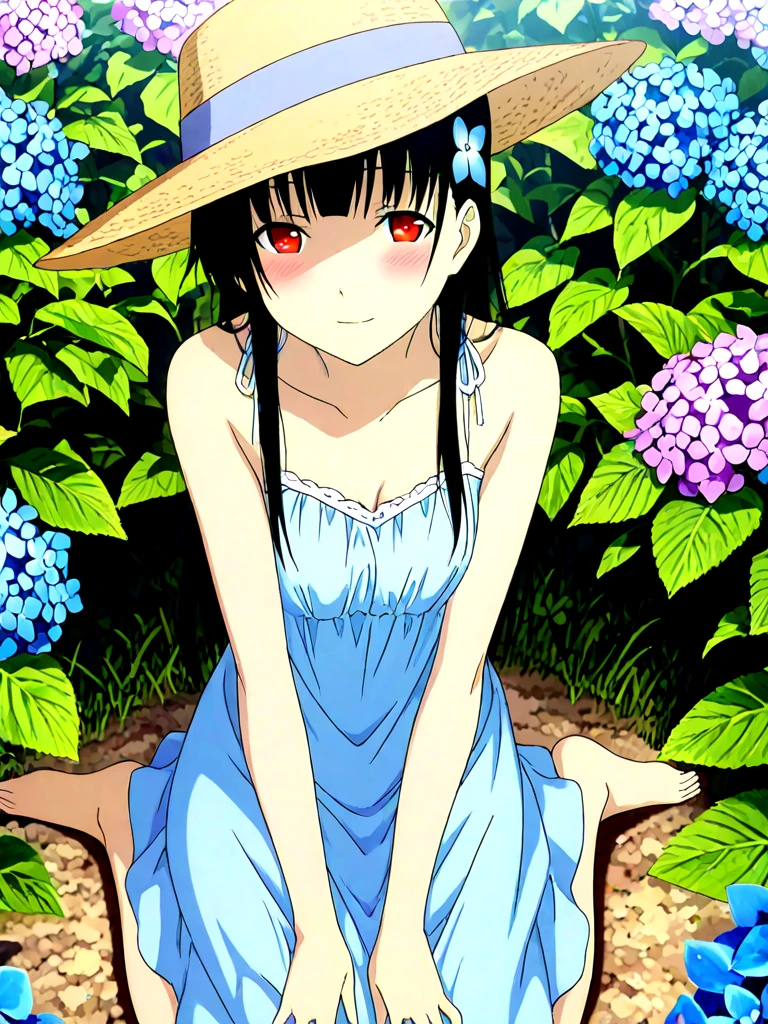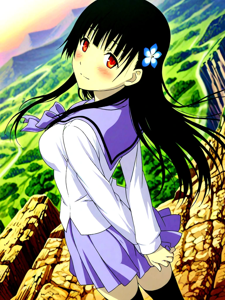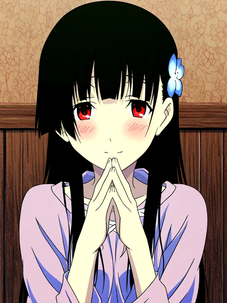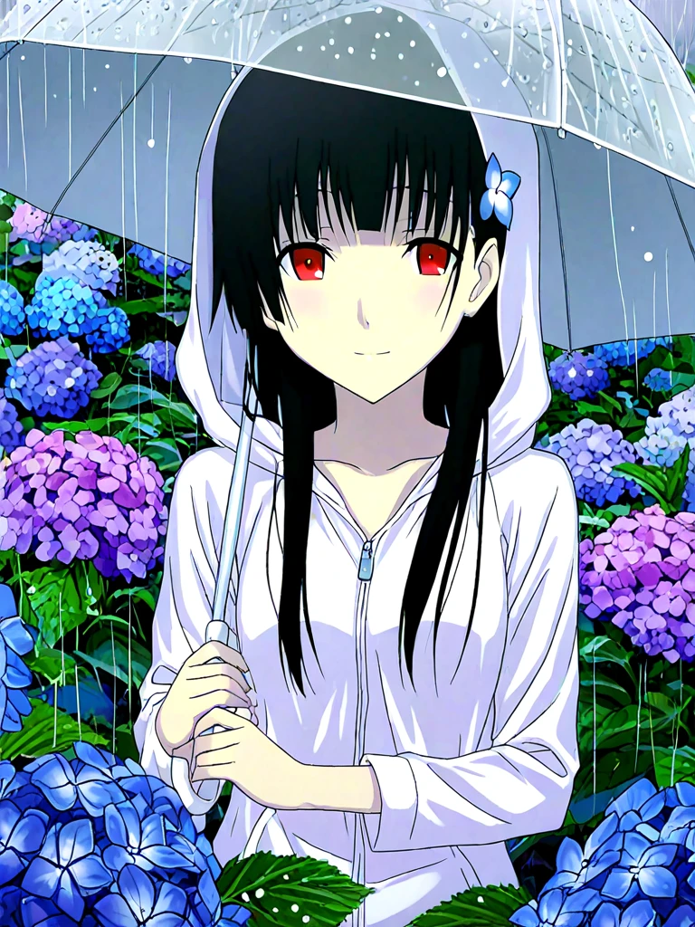 sanka rea, hime cut, long hair, pale skin, hair flower,