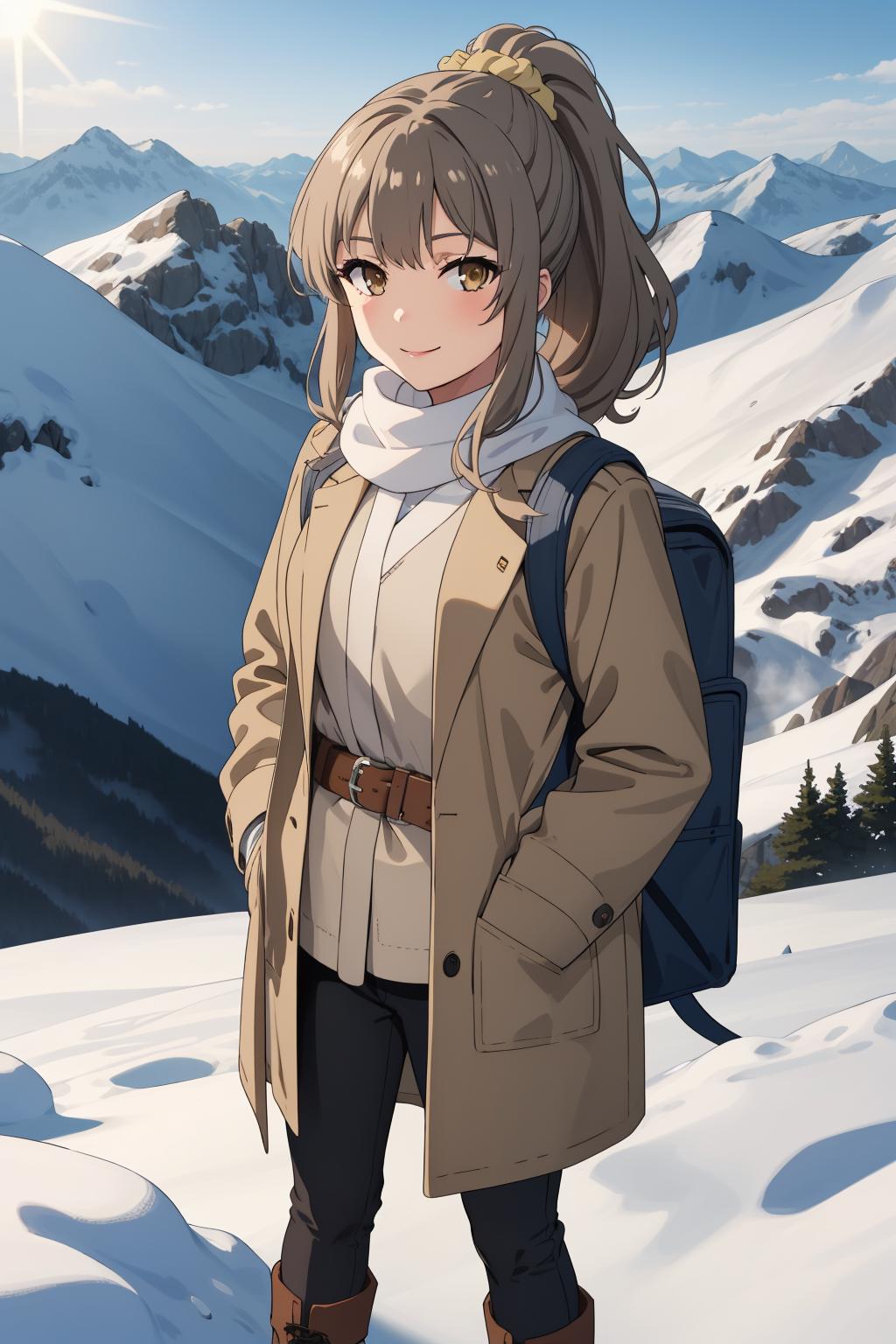 Alt Look: ashe brown hair, long hair, brown eyes, ponytail, scrunchie