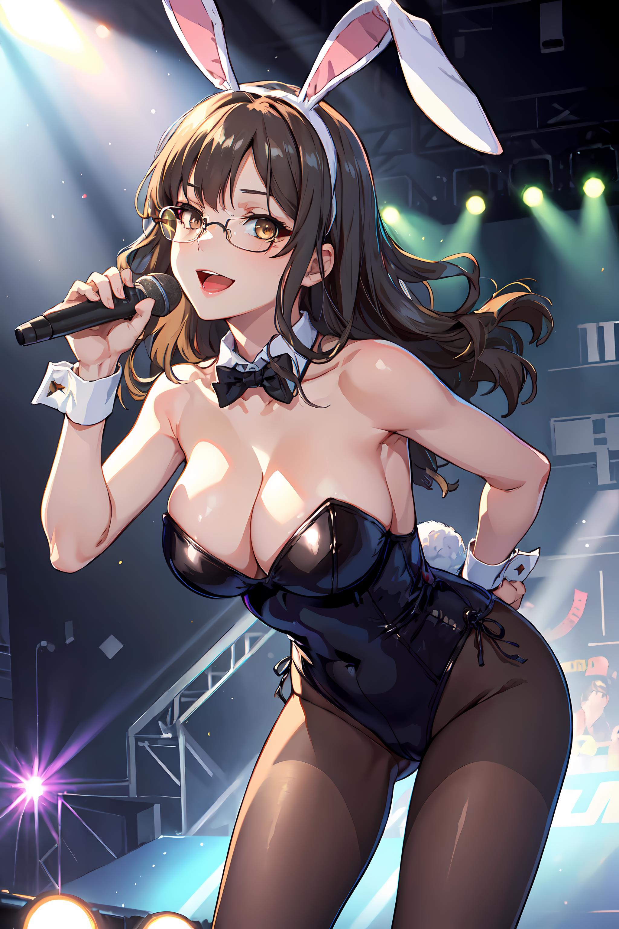 Bunny Suit: outfit3, playboy bunny, rabbit ears, pantyhose, leotard, wrist cuffs, bowtie, bare shoulder, fishnets (Optional Choice)