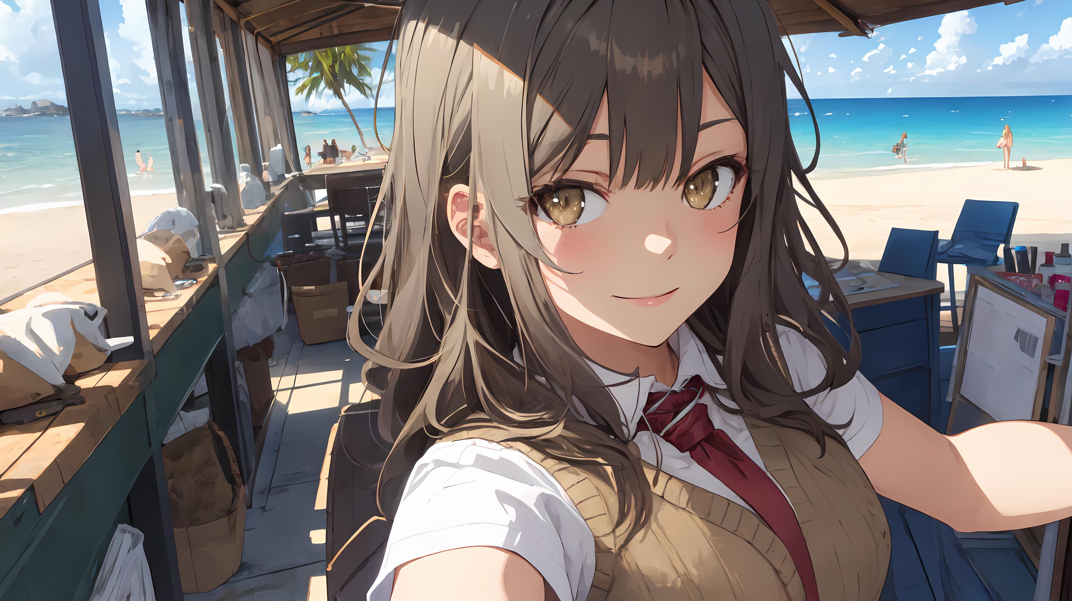 Alt Uniform: outfit2, sweater vest, beige vest, white shirt, short sleeved shirt, red necktie, pleated skirt, Glasses (Optional Choice)
