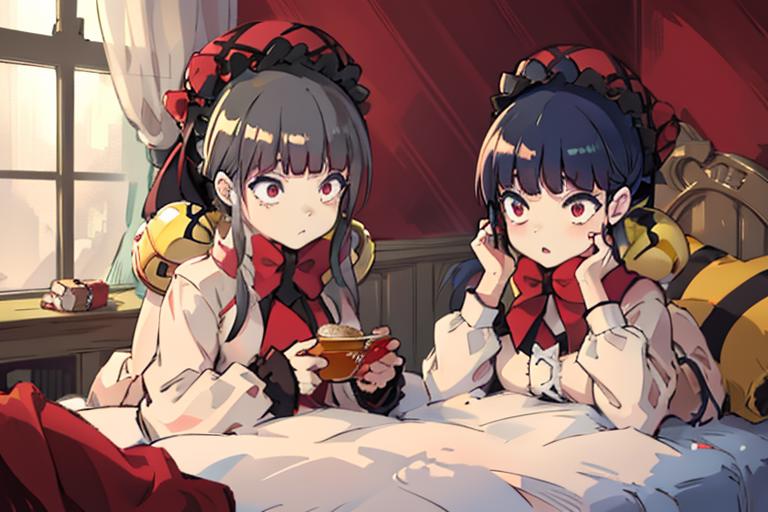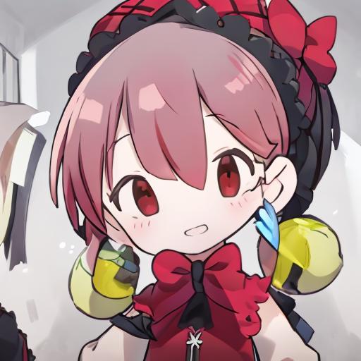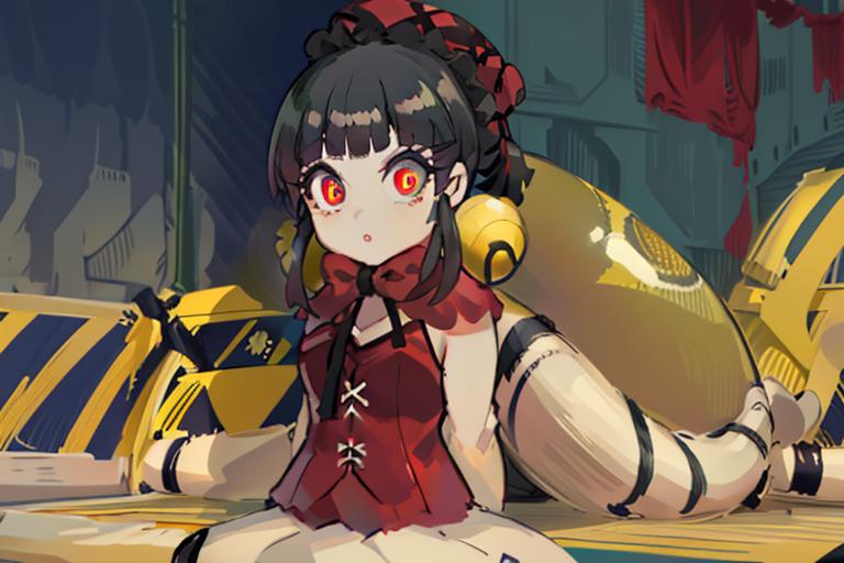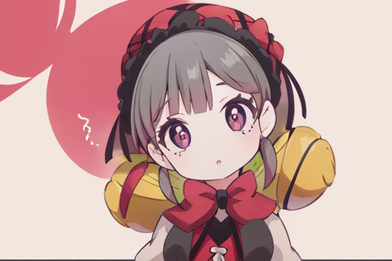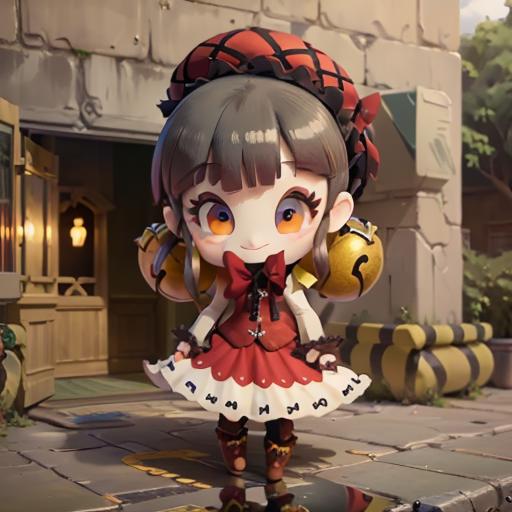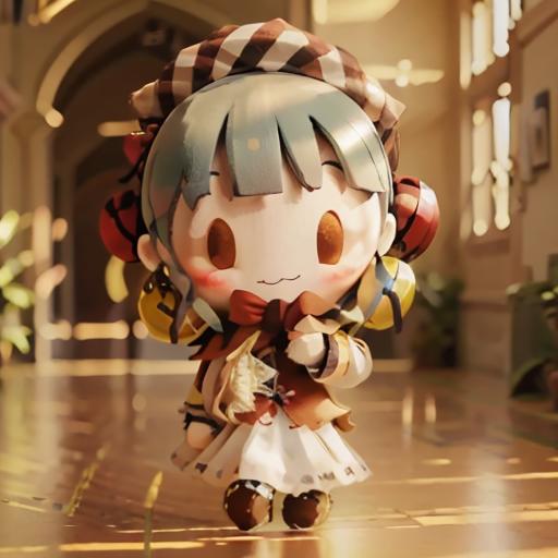 a cartoon style video clip of a tiny person in a red and white dress, 1girl, solo, indoors,