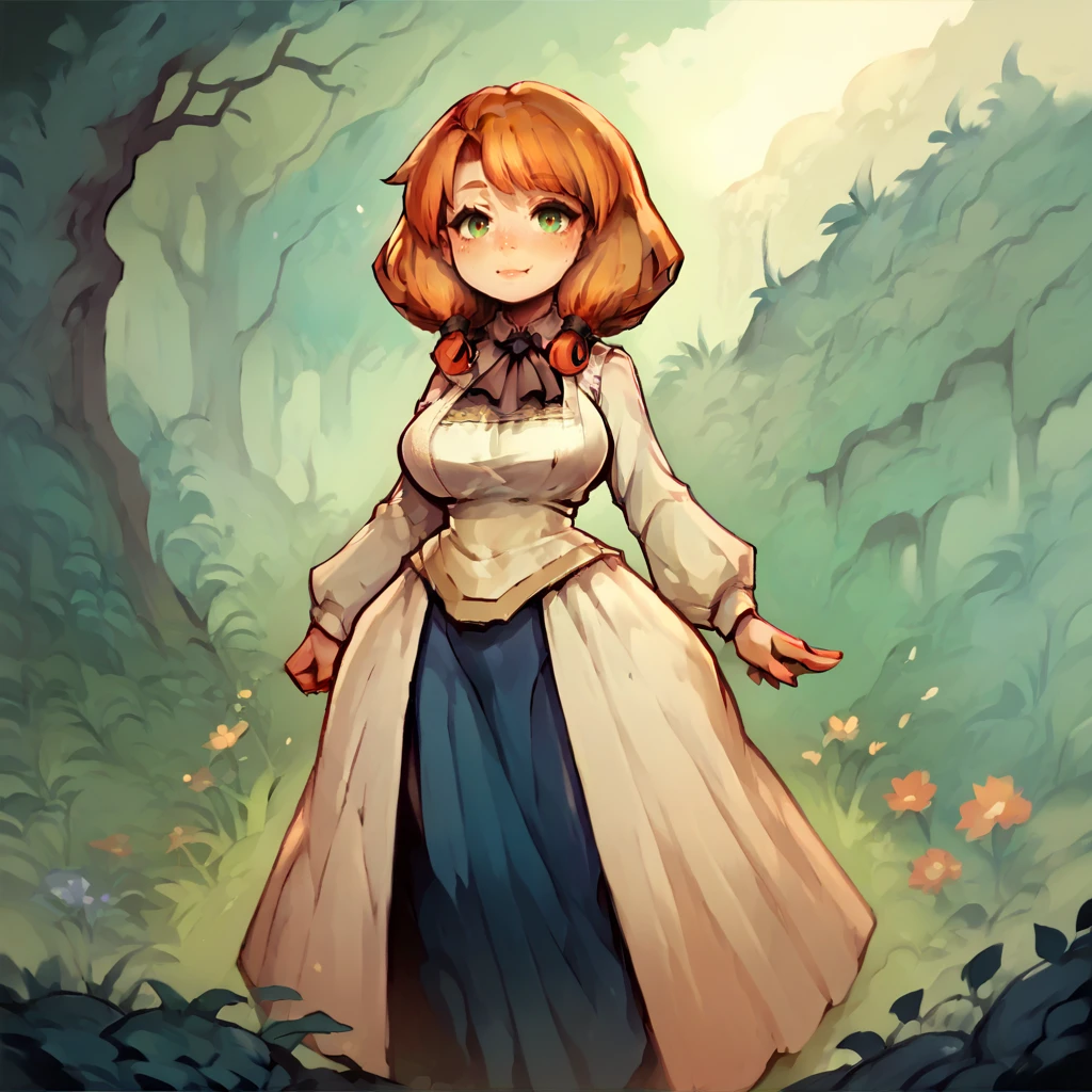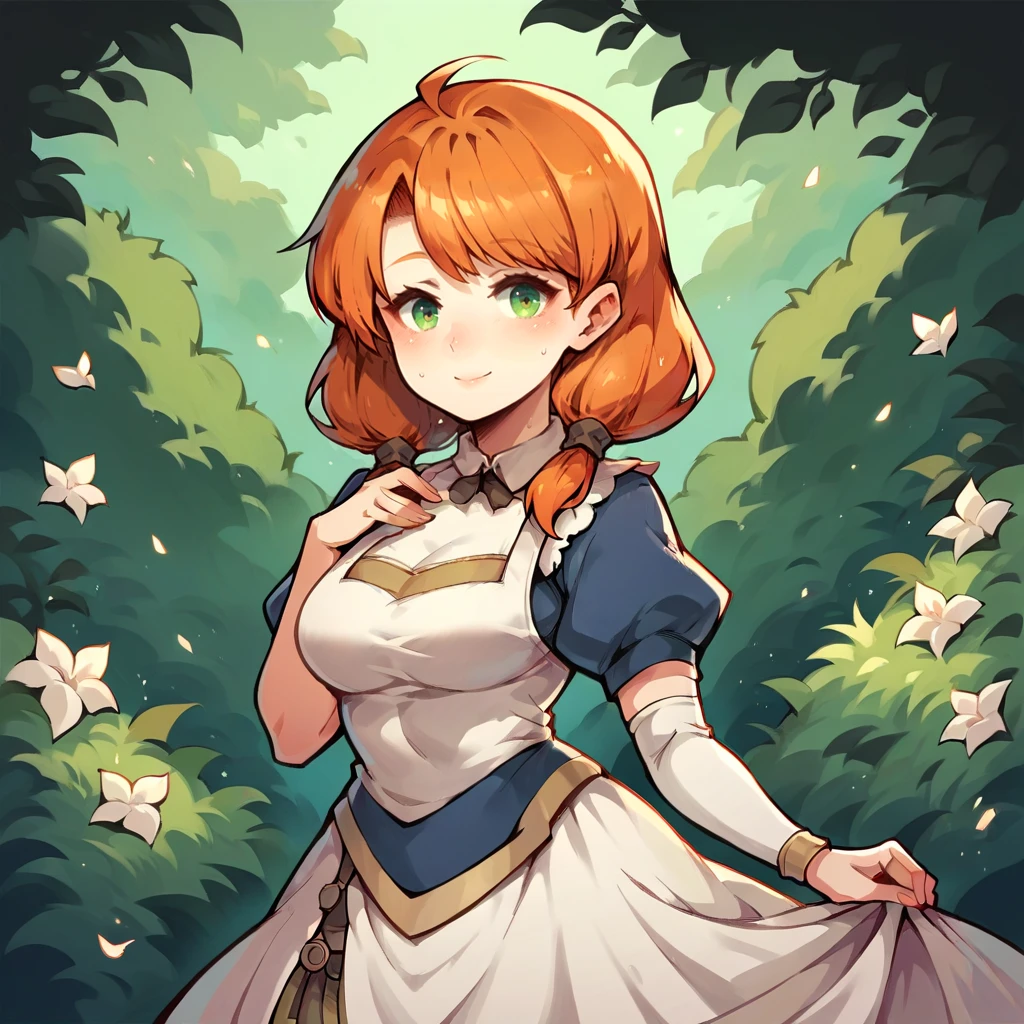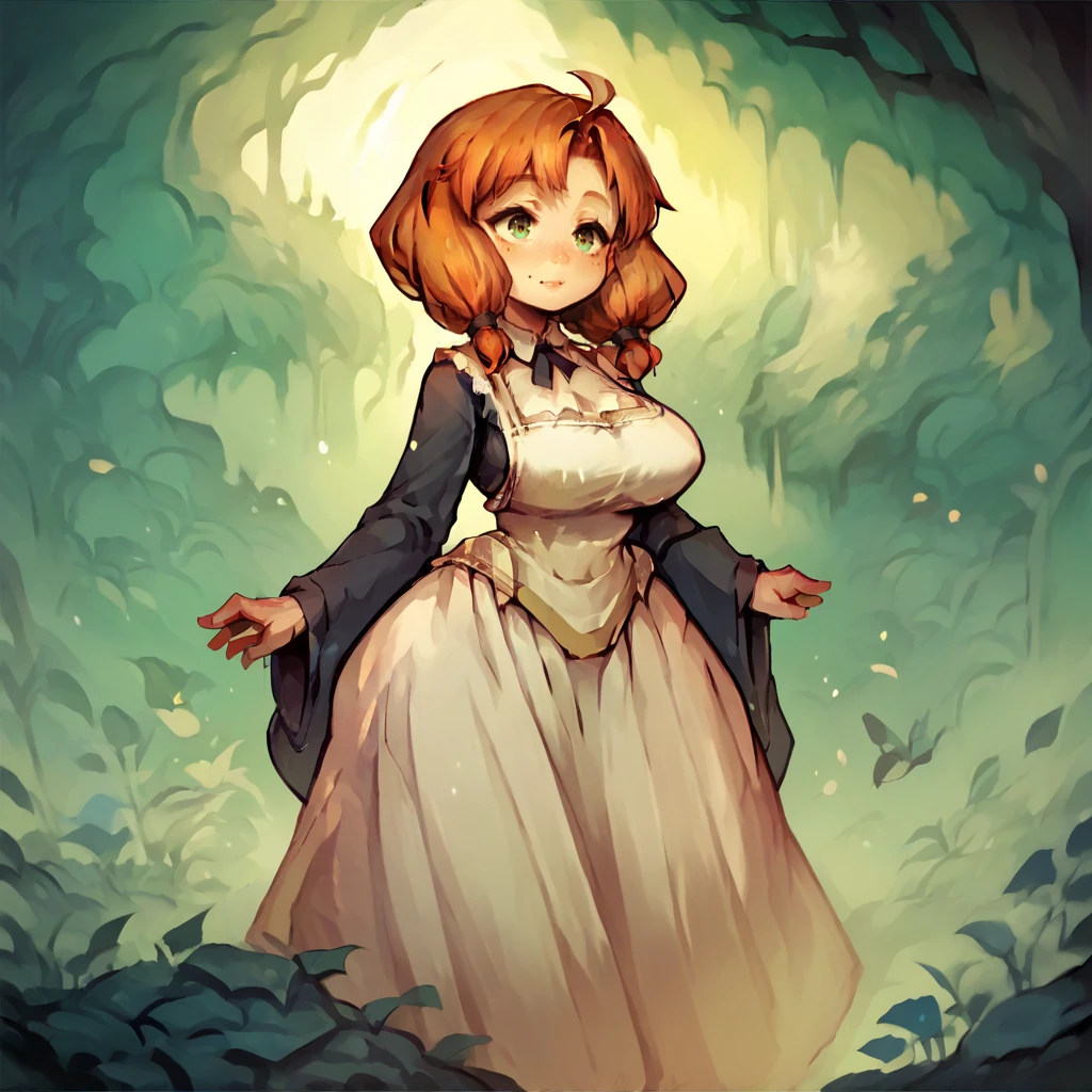 shiro, astlibra, orange hair, low twintails, round face, shortstack, wide hips, large breasts