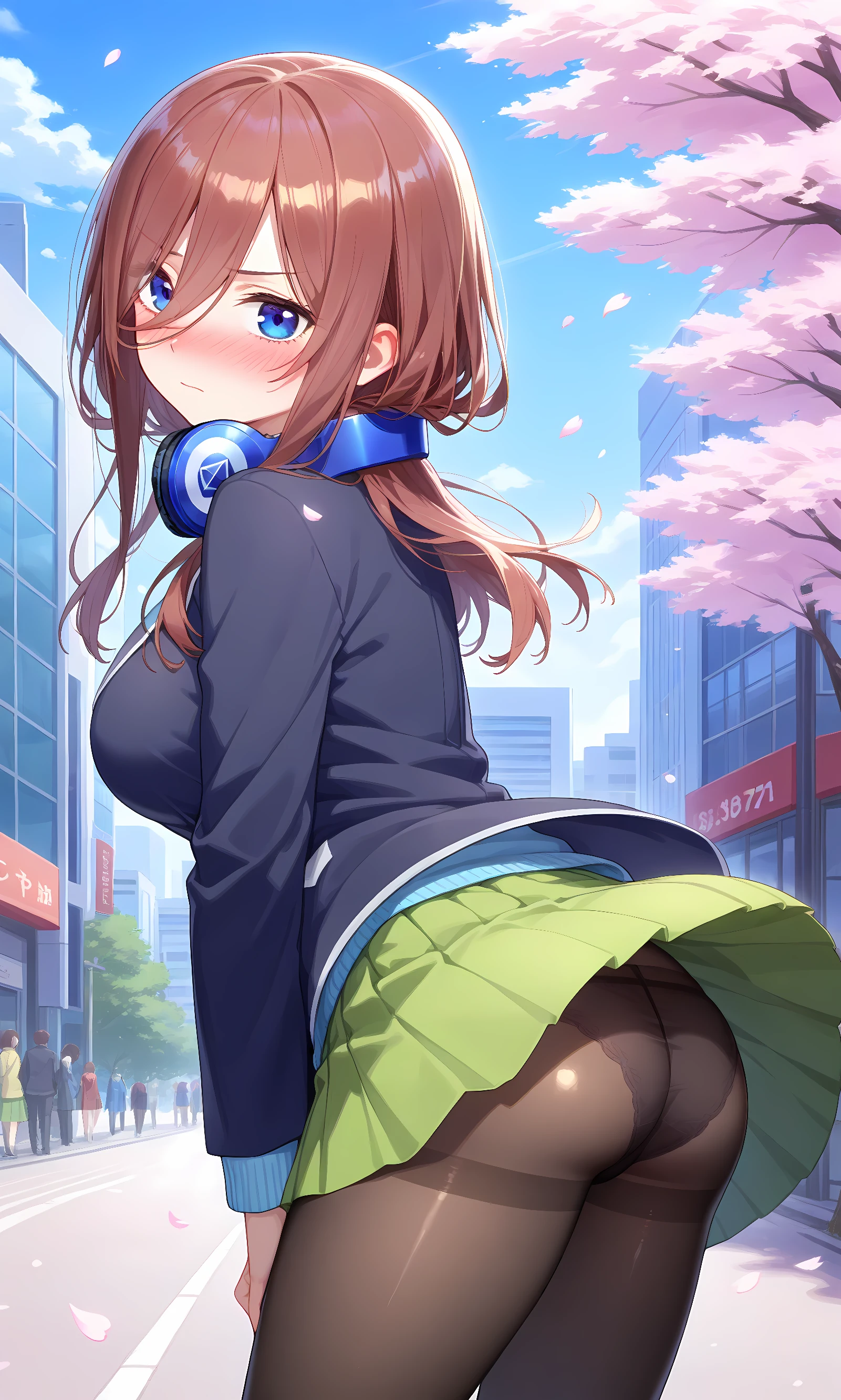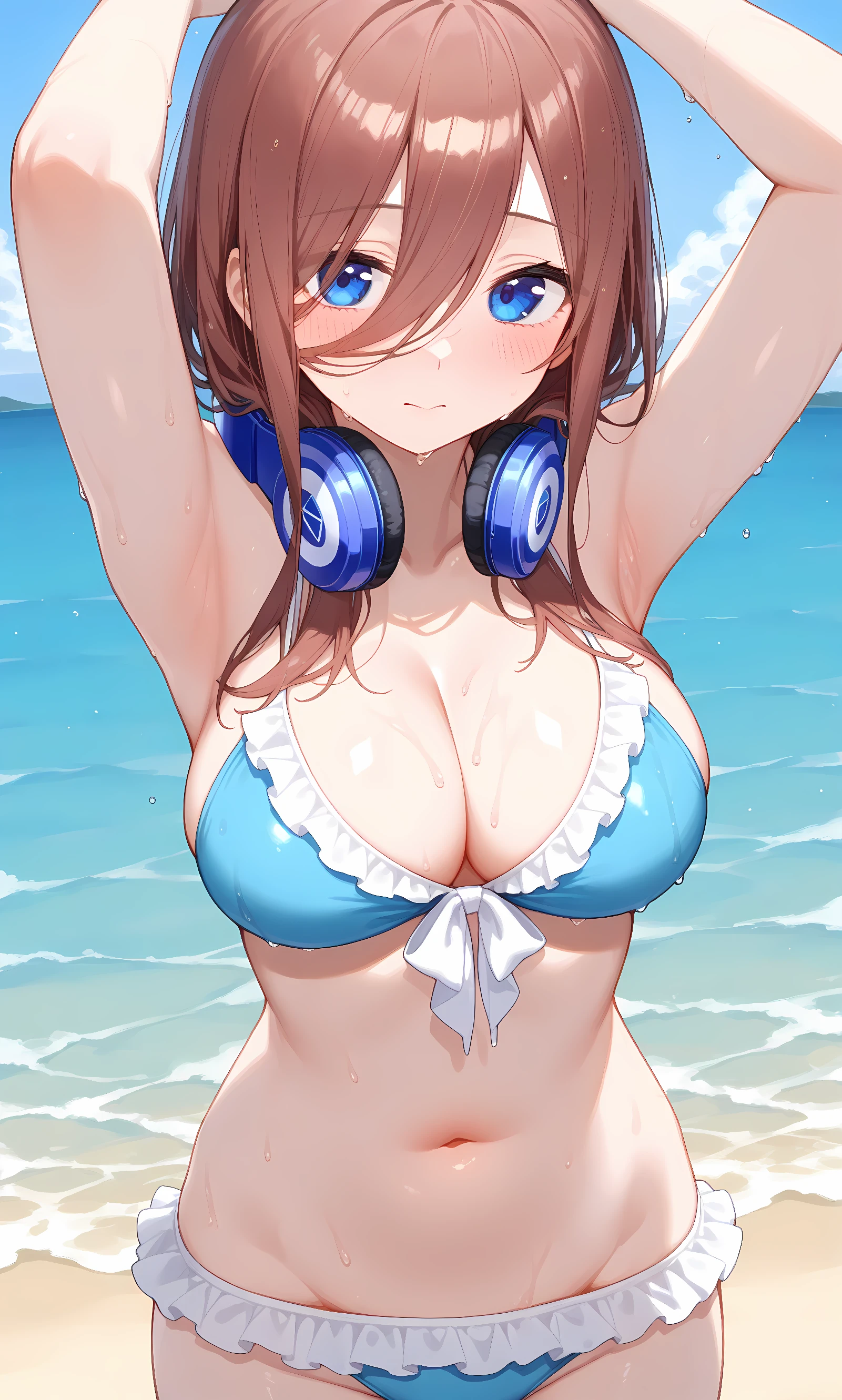 nakano miku, brown hair, long hair, blue eyes, hair between eyes, headphones