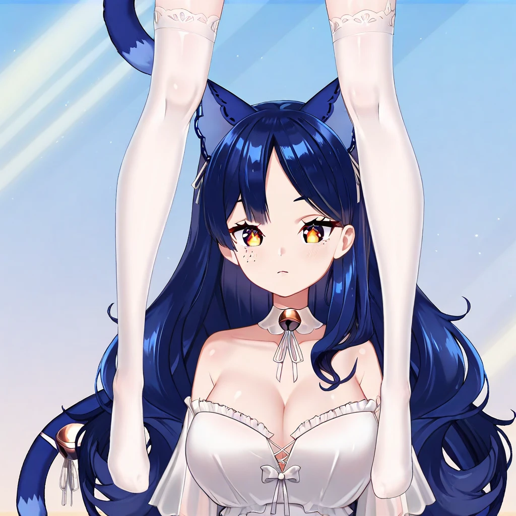 cat ears, nekomimi, blue cat ears, cat tail, blue tail,
