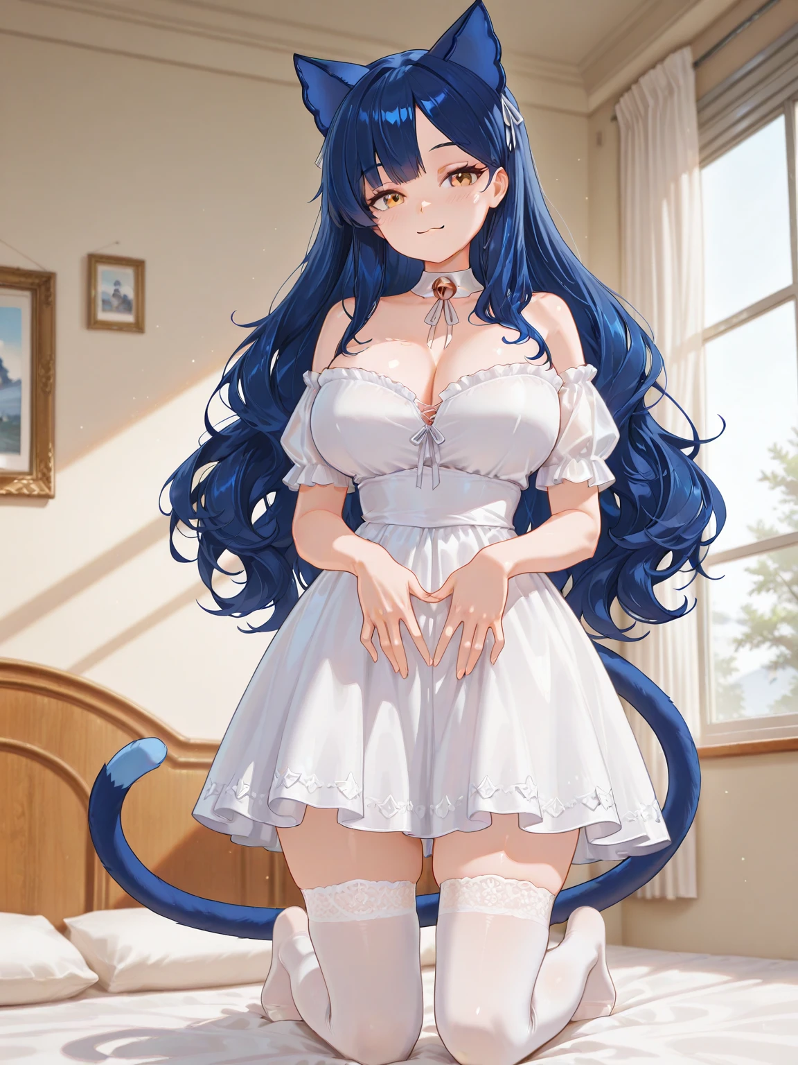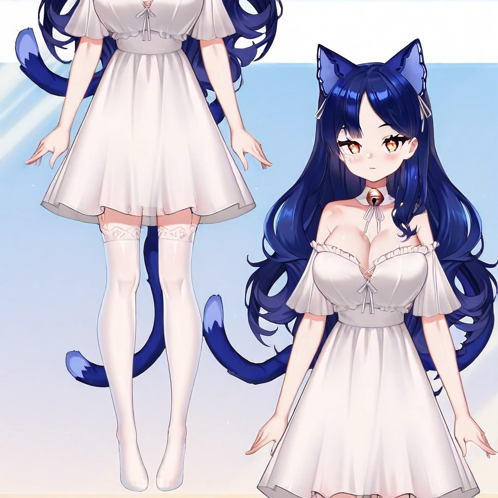 snezhi_vtuber, white dress, choker, thighhighs