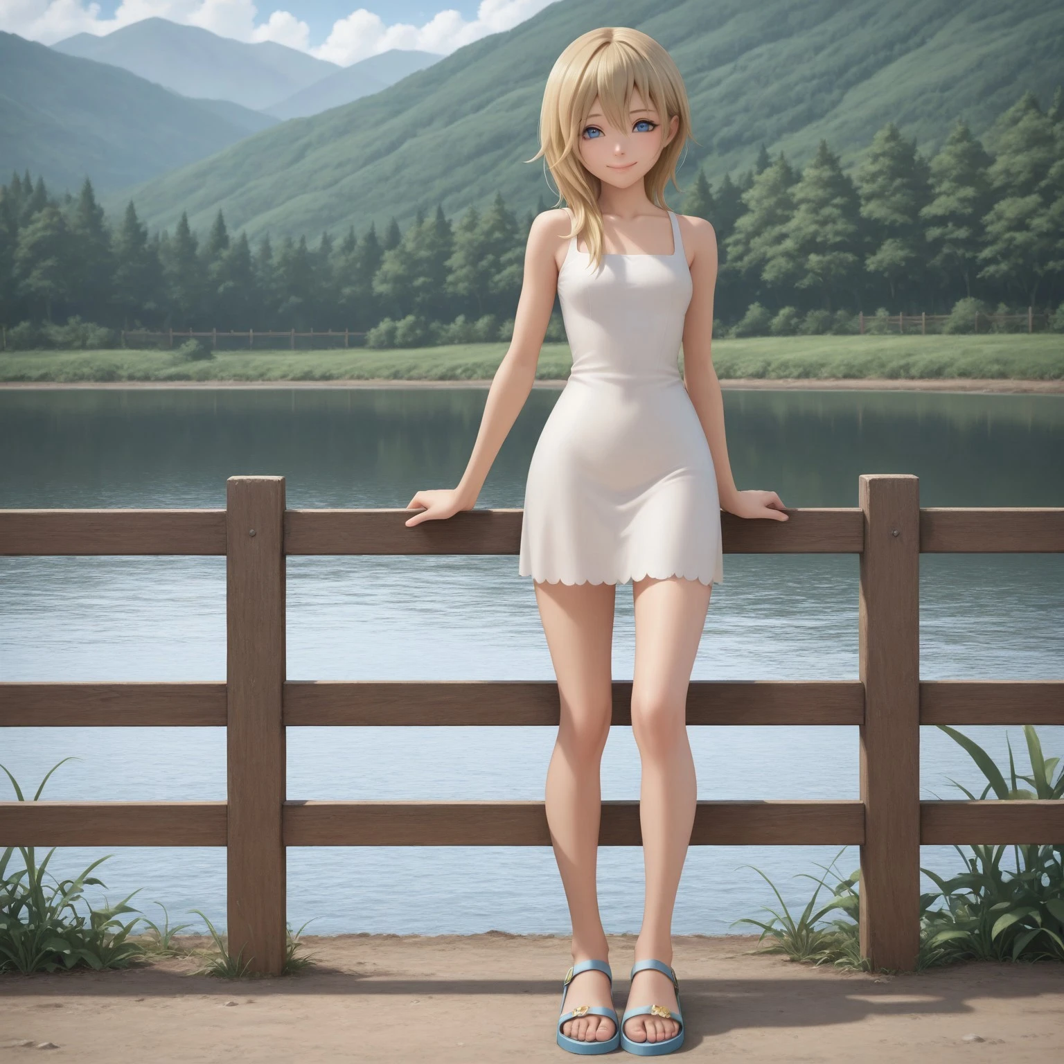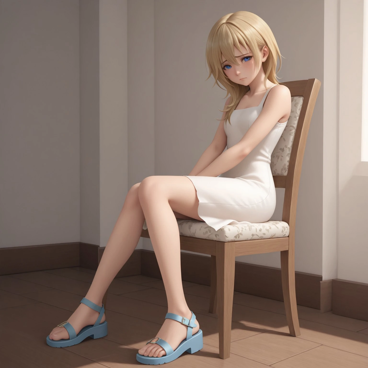 namine_kh, blonde hair, blue eyes, white dress, sandals