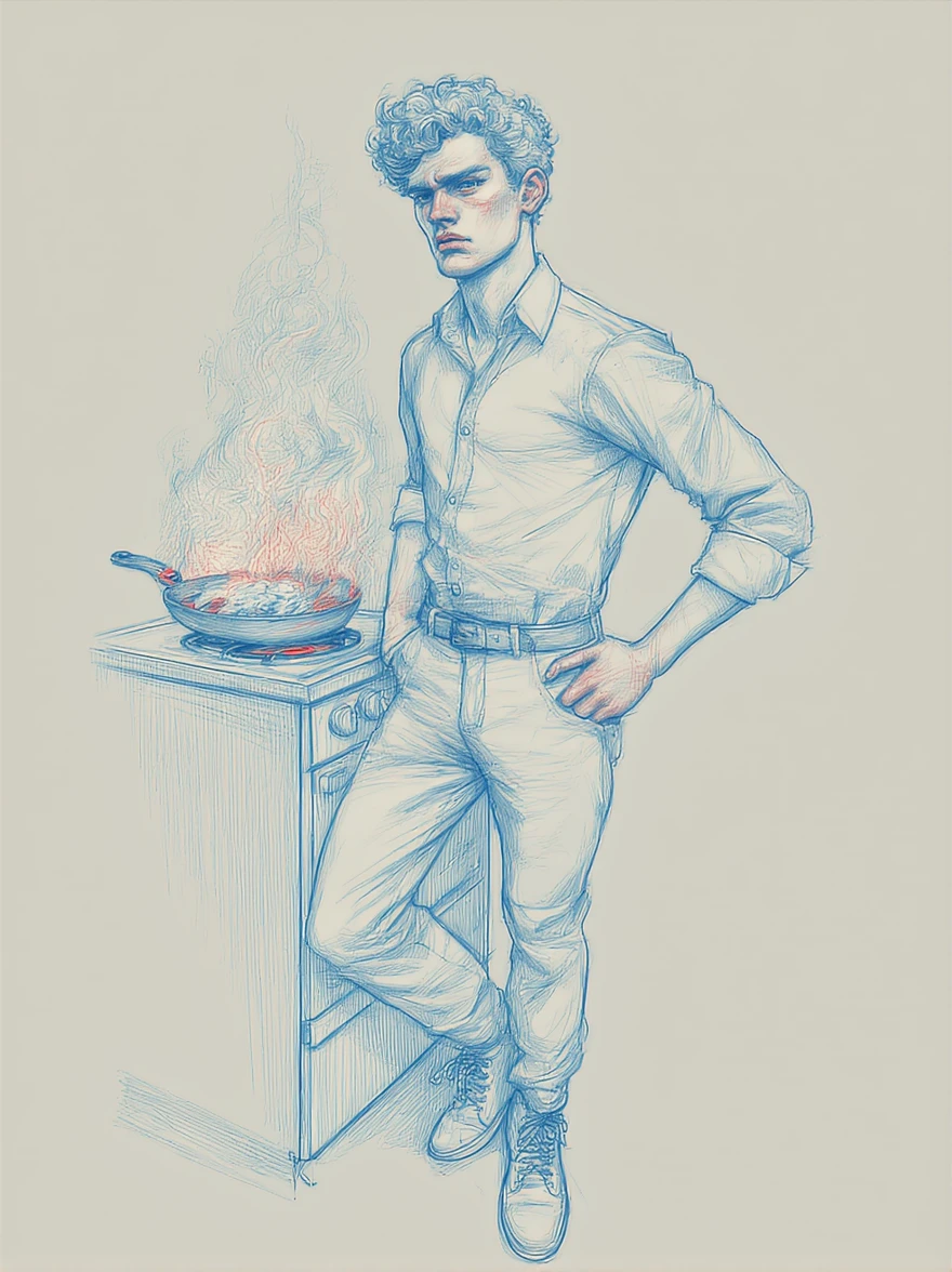 an illustration with sharp, bold lines.