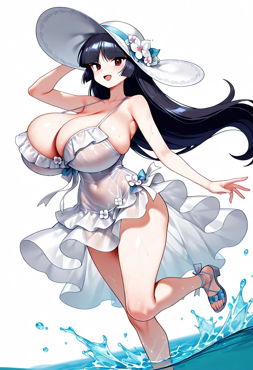 TAGS : SBD,dress,cleavage,white dress,bare shoulders,flower,white sun hat,hat flower,see-through,still life,high heels,
