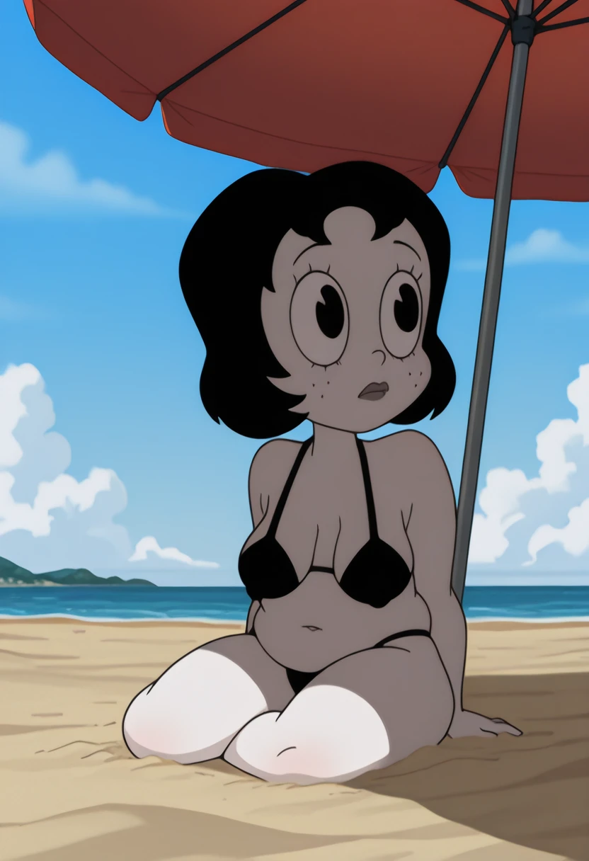 t00t8r4, 1girl, black hair, black bikini