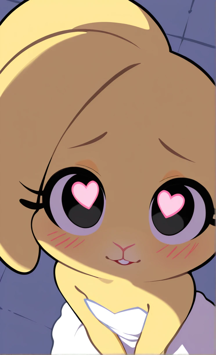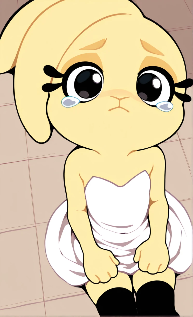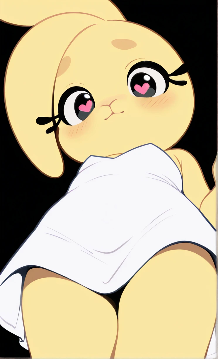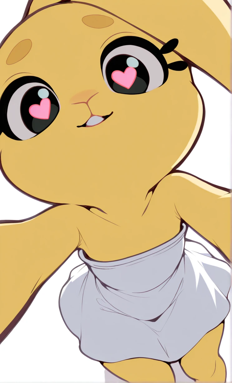 1girl, bonita, rabbit girl, furry female, black eyes, black thighhighs,yellow skin animal ears, white dress, strapless