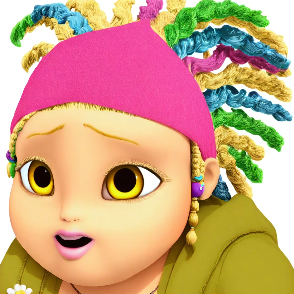 MLmylenehaprele, blonde hair, blue hair, green hair, pink hair, multicolored hair, braids, multiple braids, gamboge-yellow eyes, pink lipstick,