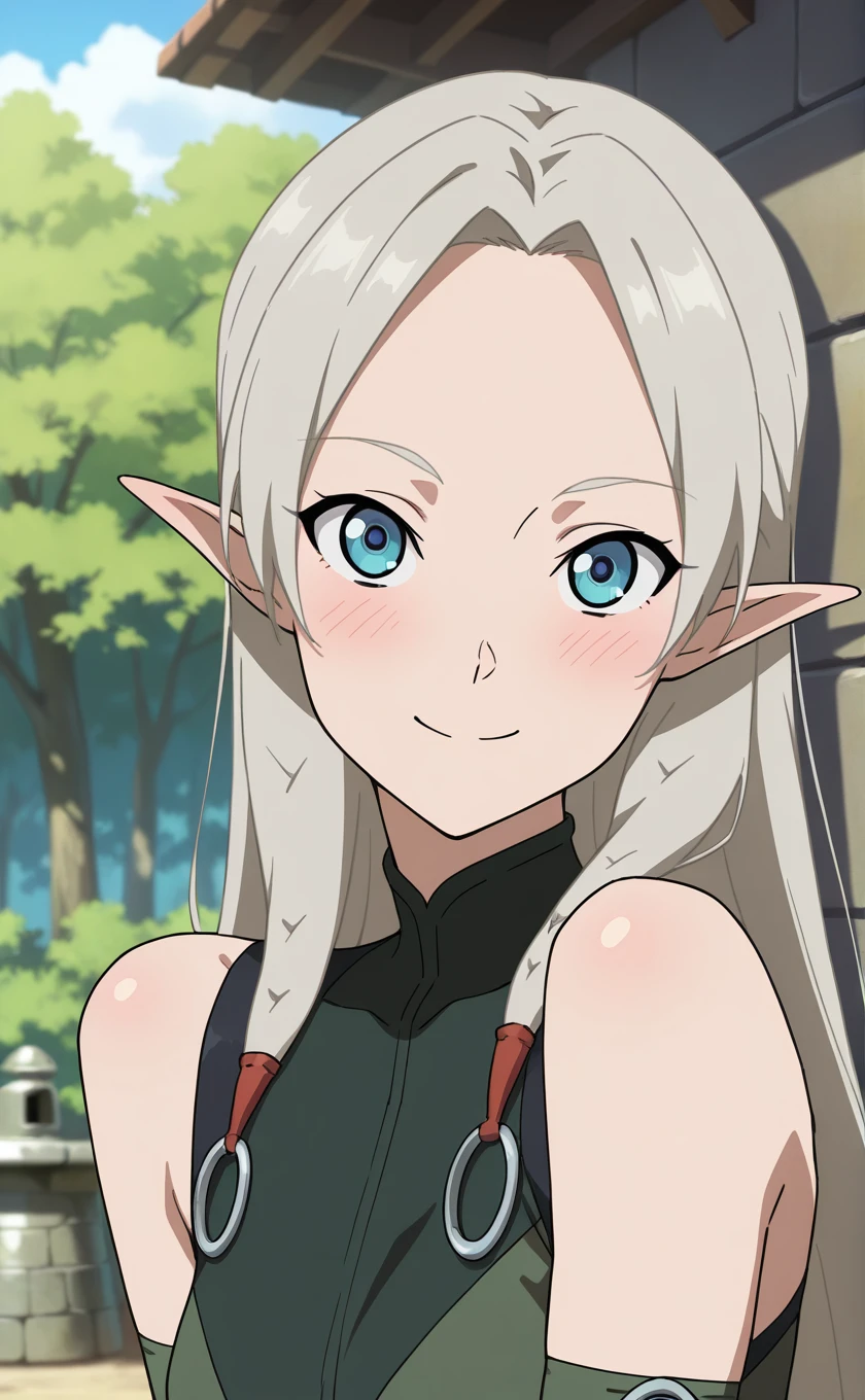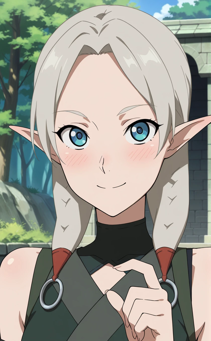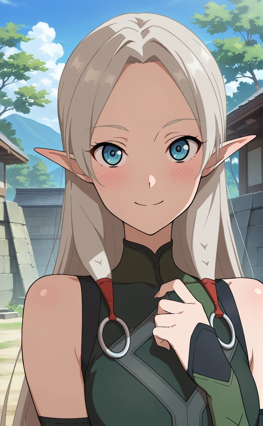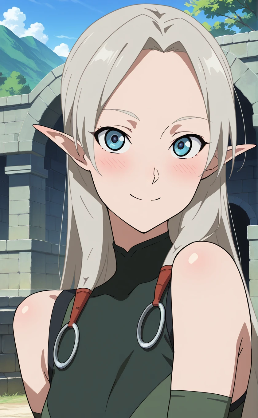 long hair,grey hair,pointy ears,forehead,blue eyes