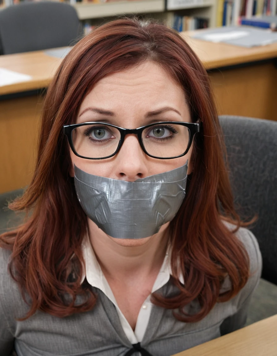 Trigger is duct tape gag. You can try changing the tape color by prompting, "gagged with (color) tape."