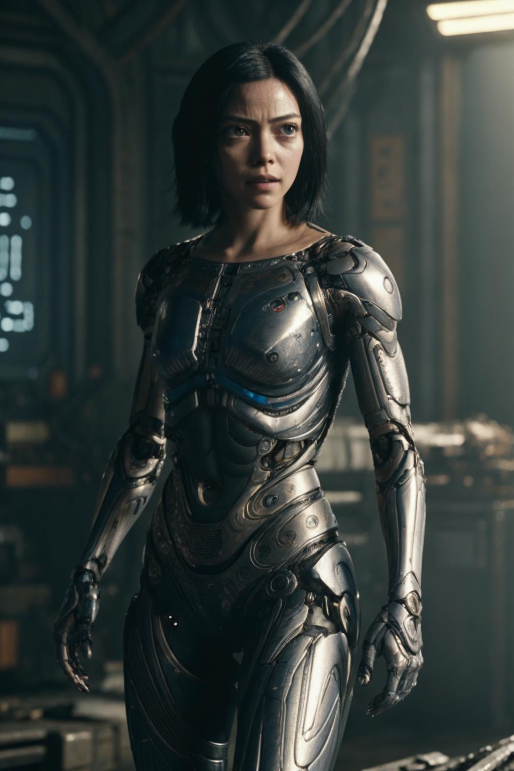 Fine tuned Lora on different mostly up close images of alita. If you use the lora the weight 0.3 to 0.8 gave me good results. Sometimes reducing the strength is better. Both Lora versions can be used at the same time with low stregth to get better results in some cases. Also if you mention the name alita in the prompt the alita style is stronger. You can also try to describe her emotions. I used words futuristic suit, tense look, serious look, smiling, sad, each of the words can be combined with slightly (slightly tense look, slightly smiling...).