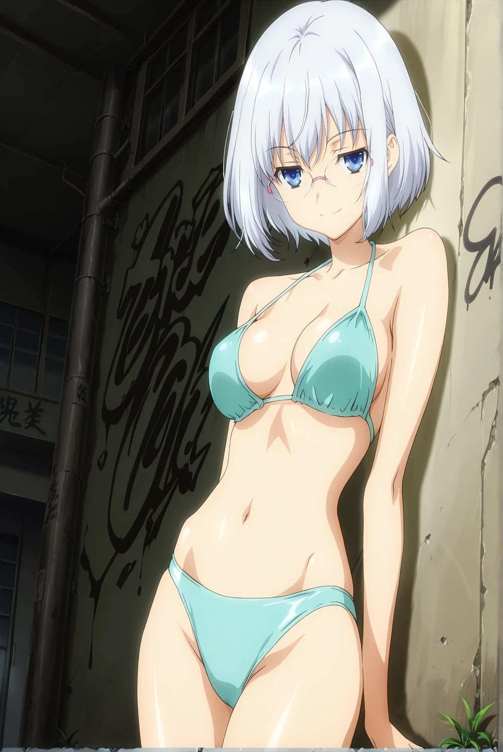 AST: origami, 1girl, short hair, white hair, bangs, blue eyes, breasts, large breasts, headgear. bodysuit, leotard, thighhighs, ori-ast