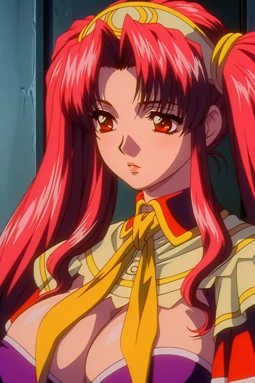 1girl, Mina Konomichi (M.E.M.), red_hair, long_hair, twin tails, red_eyes, lips, glossy_lips, , M.E.M._art_style, HD, Hi-res, No-Flaws, Excellent_Quality