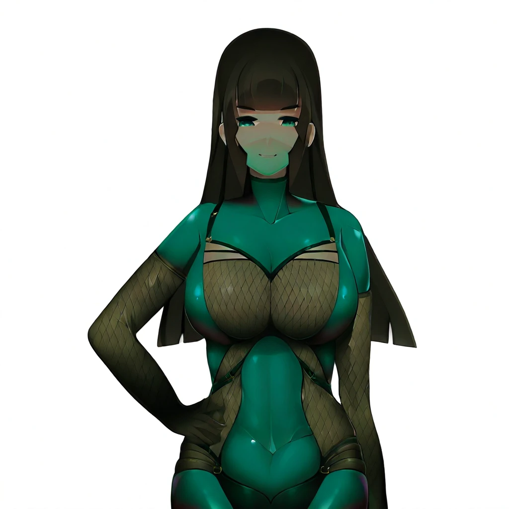 KaoriTower, 1girl, brown hair, long hair, straight hair, blunt bangs, green eyes,