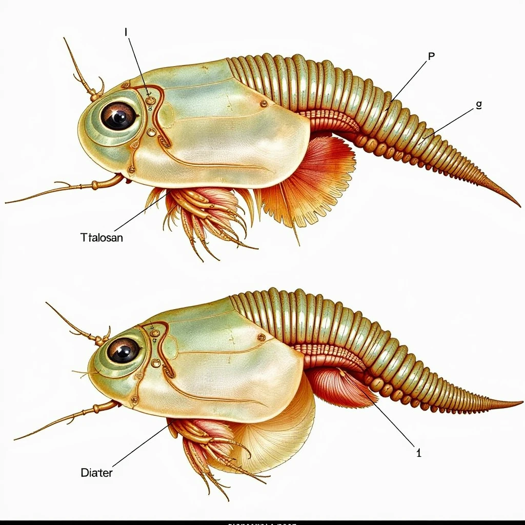 • A long, segmented abdomen with rows of legs for swimming and foraging.