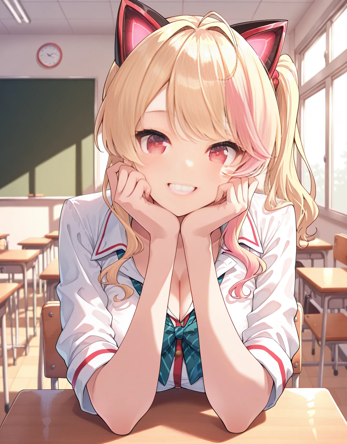 "NekonokiMochiSchool, side ponytail, fake cat ears,"