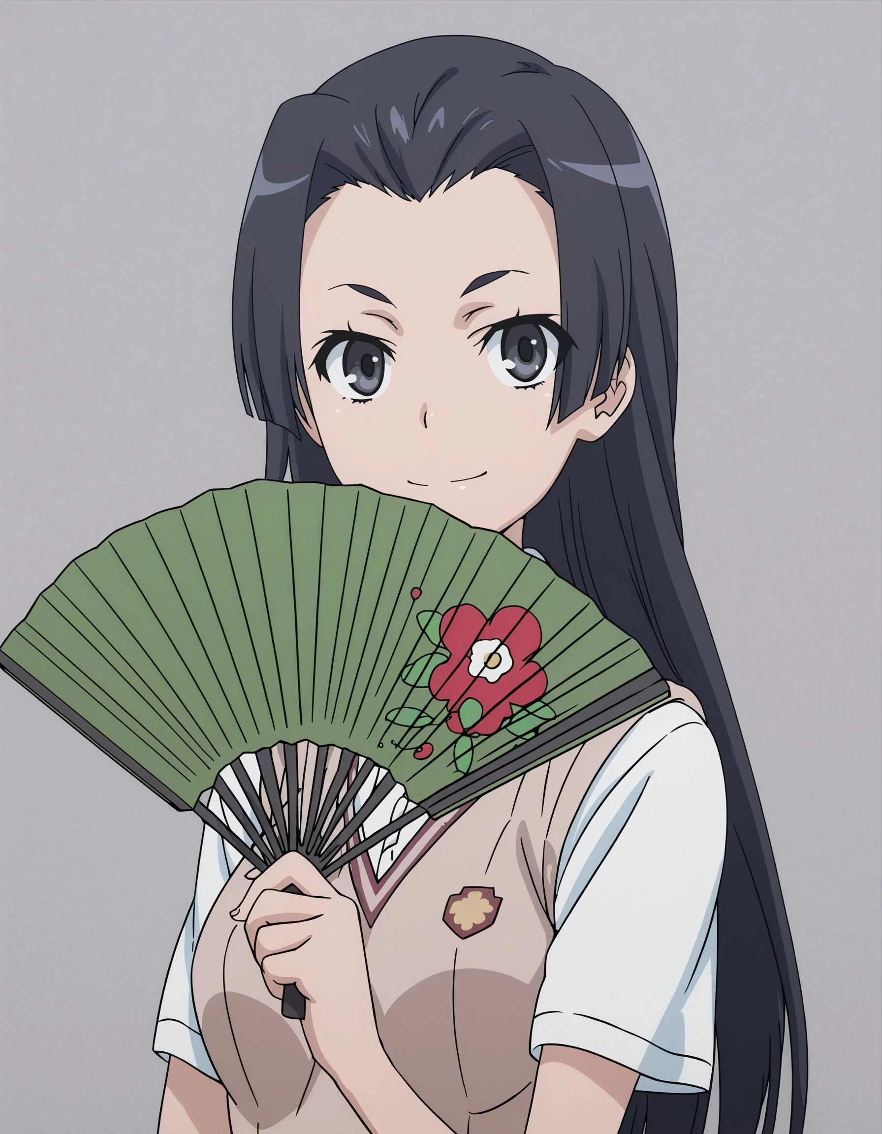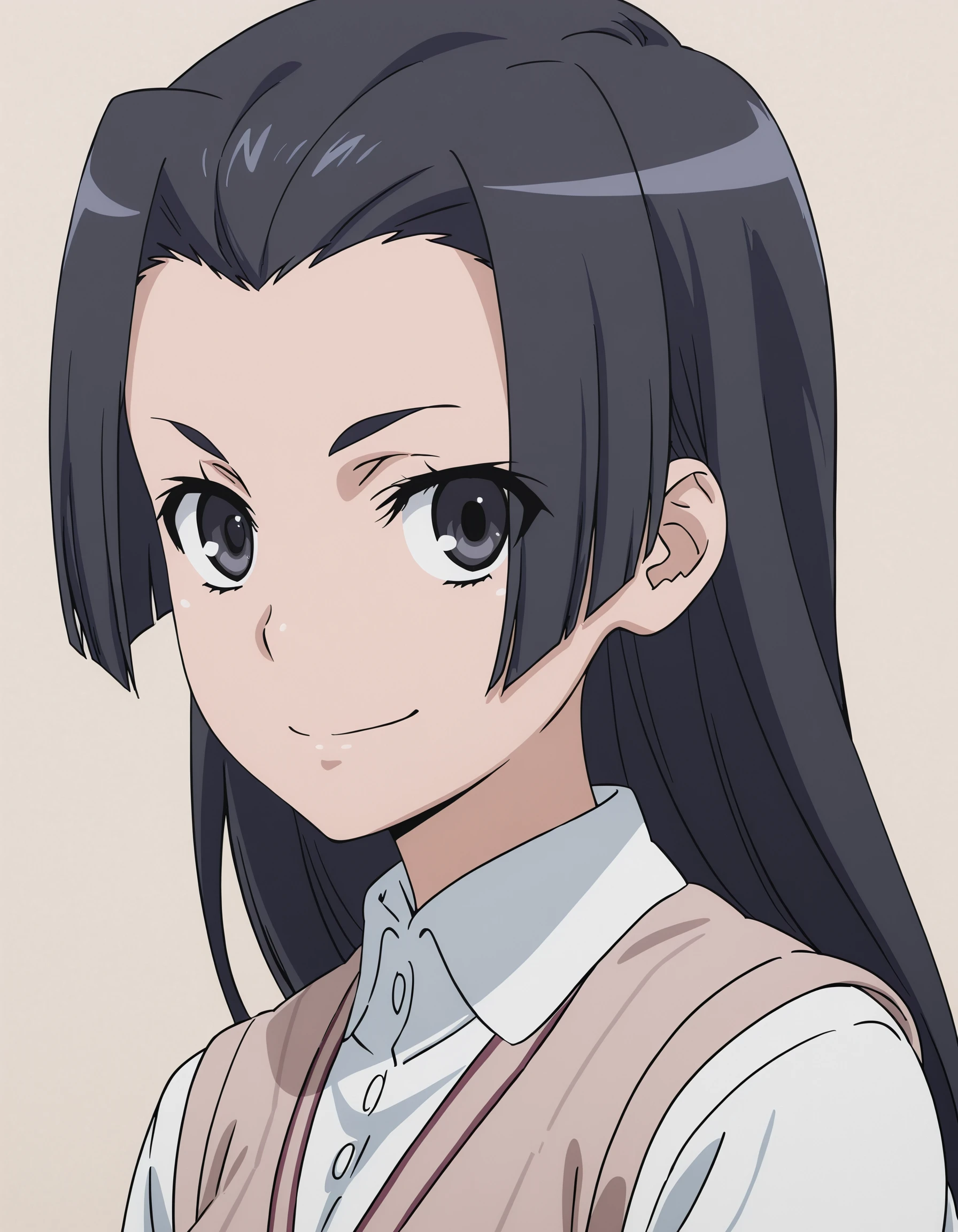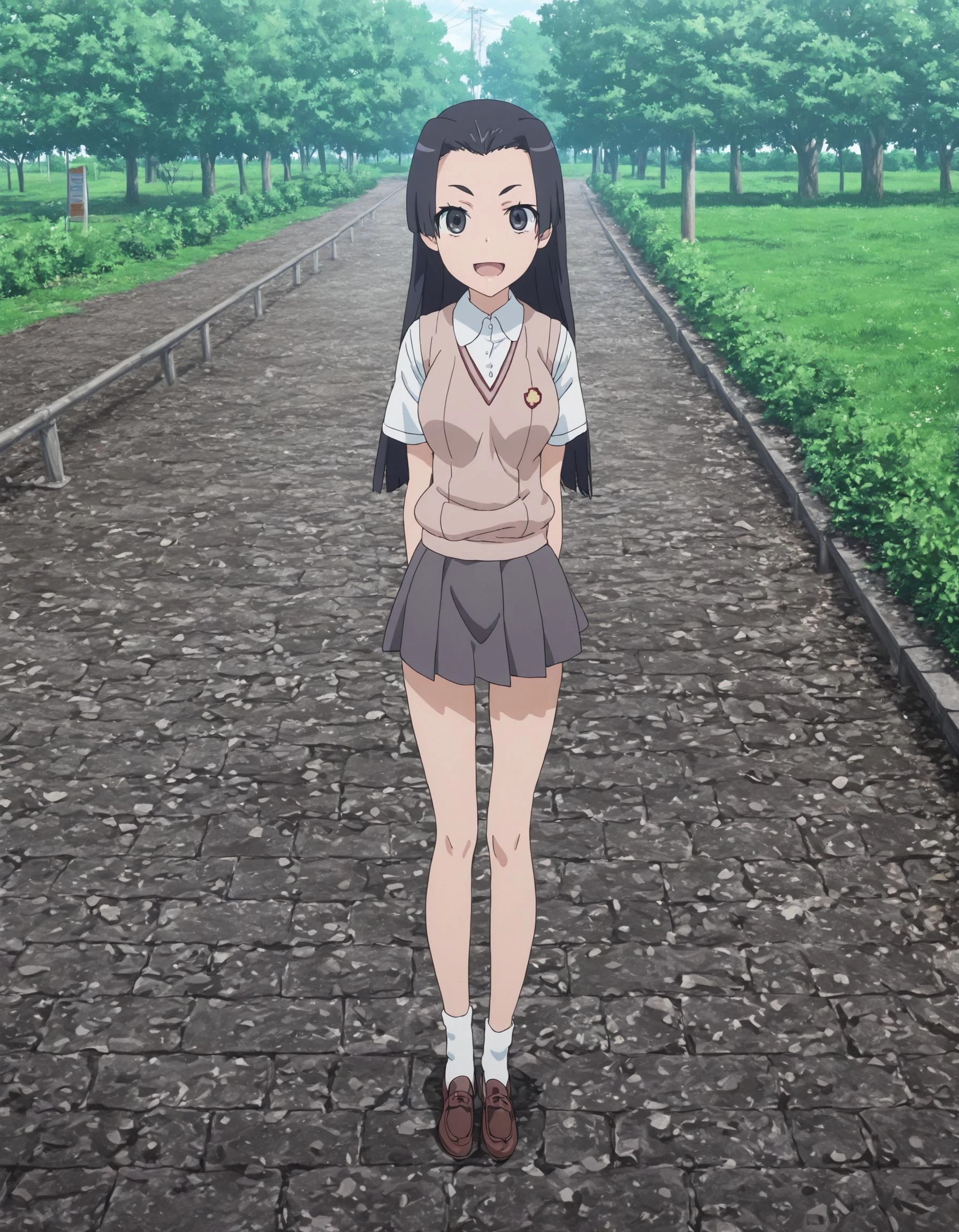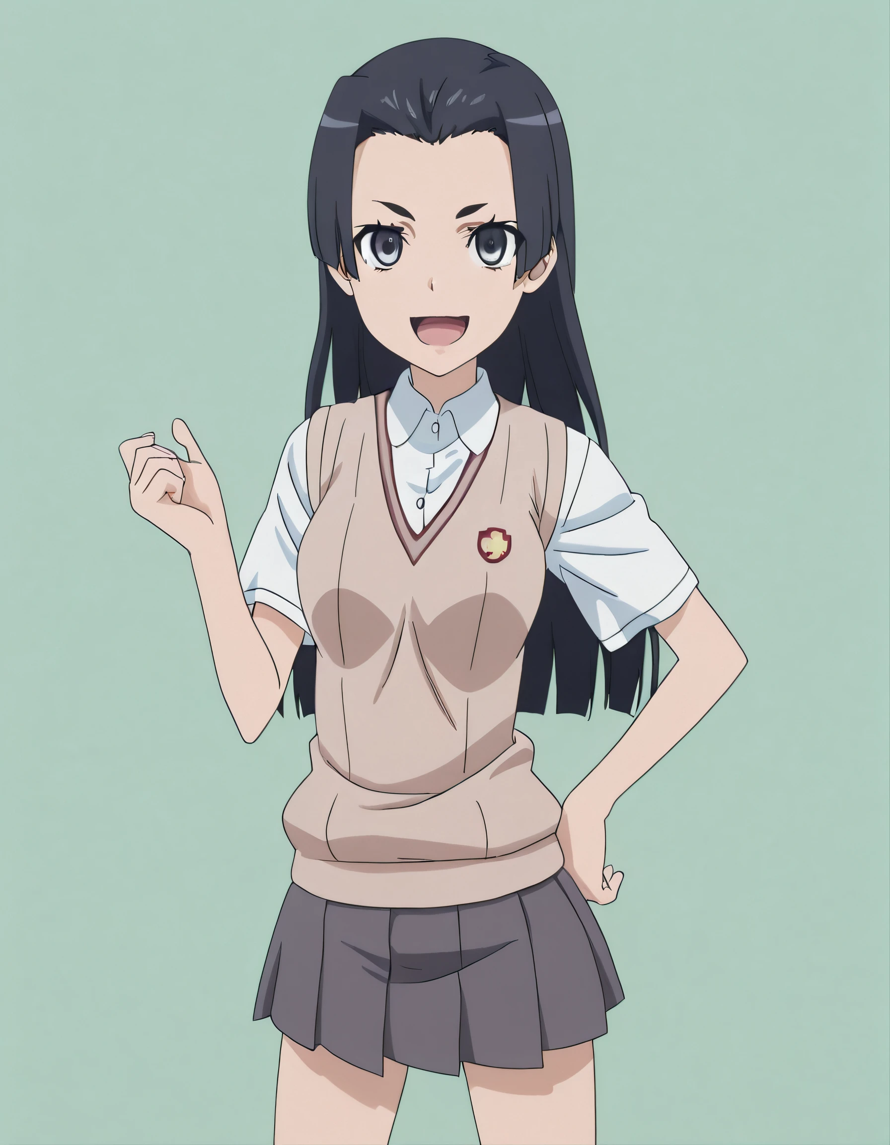kongou mitsuko, black hair, long hair, 1girl, solo, school uniform, sweater vest, black eyes, tokiwadai school uniform,