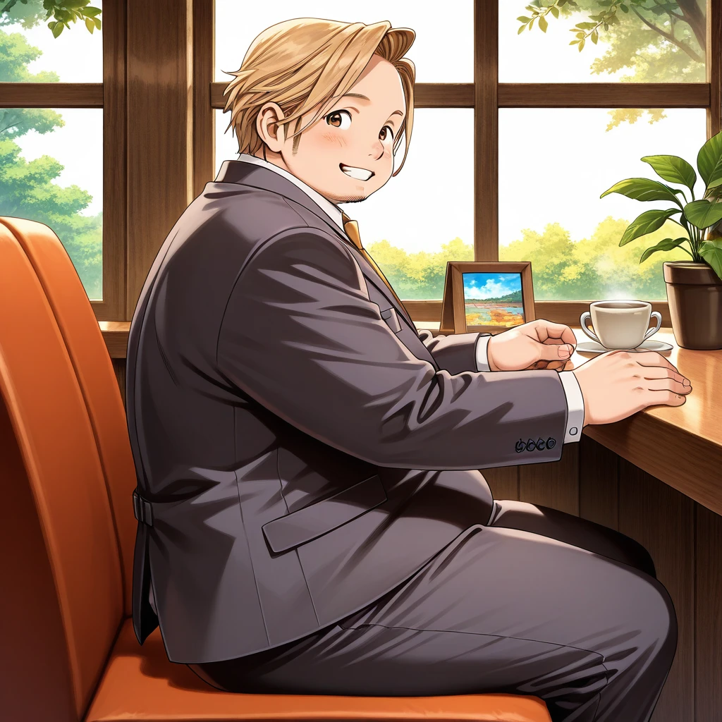 1. mnt-morino, 1boy, brown-blonde hair, brown-blonde eyes, chubby, agep up, solo,