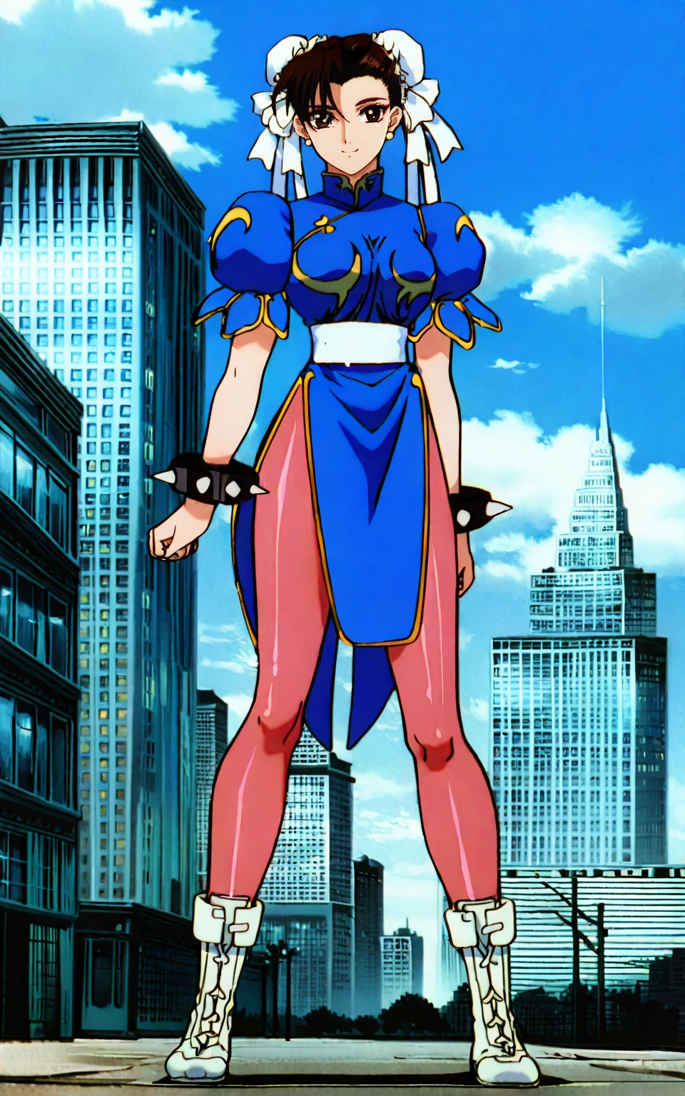 inteqipa outfit, bun cover, dress, jewelry, pantyhose, earrings, bracelet, sash, china dress, pelvic curtain, spiked bracelet, boots, white footwear