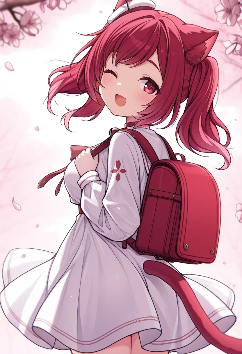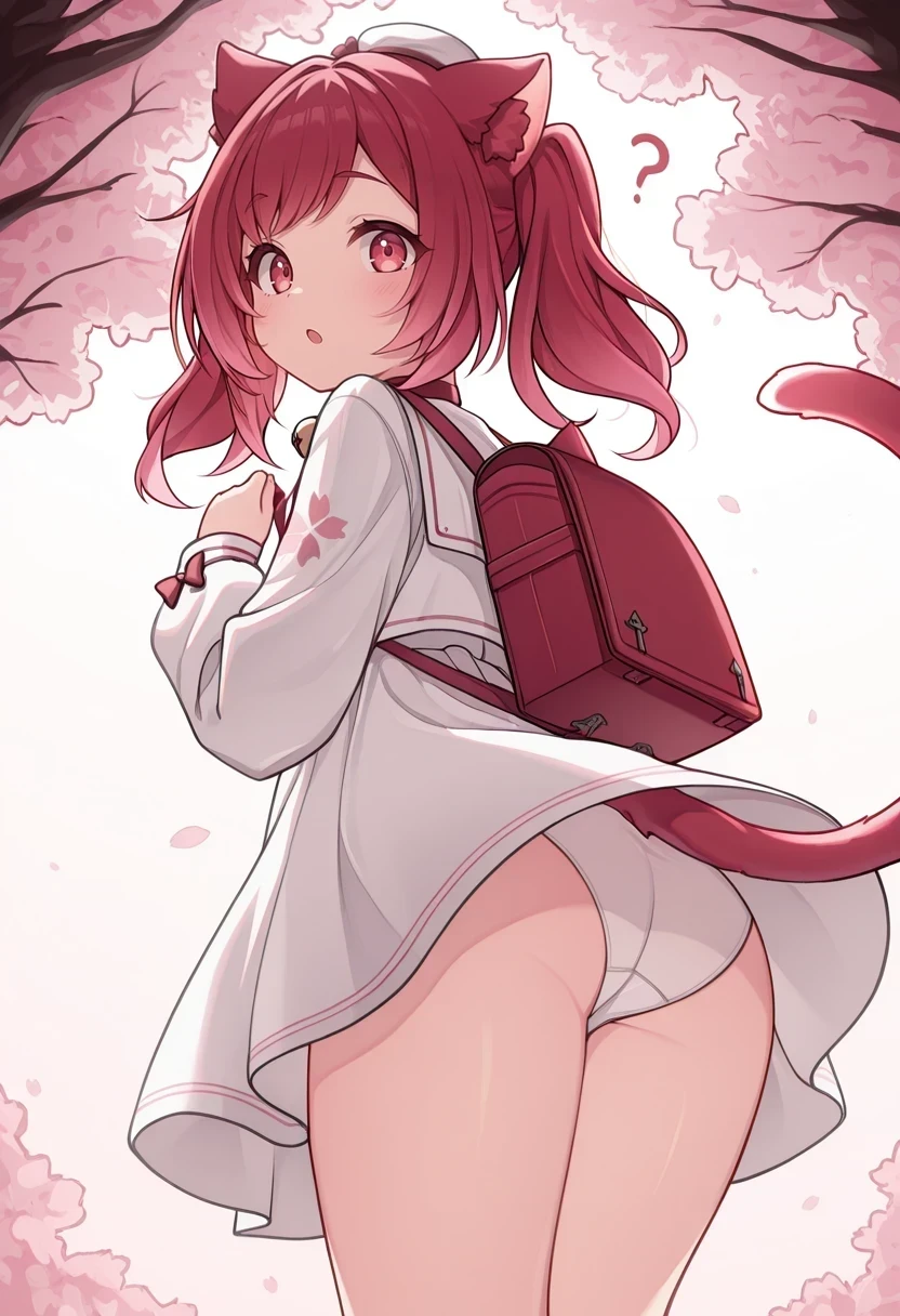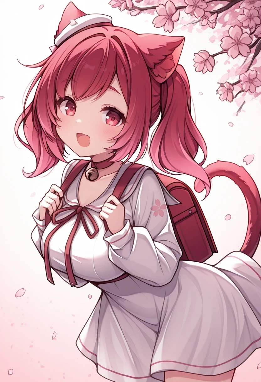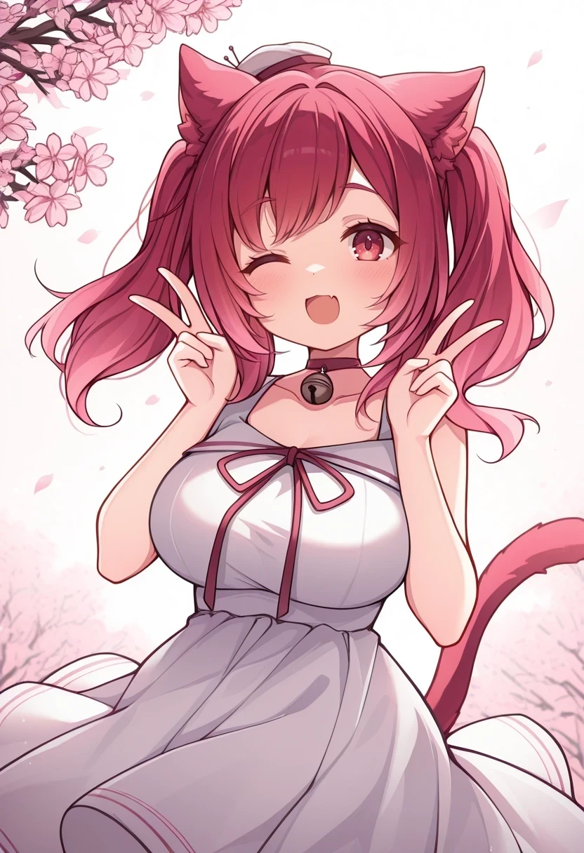 white dress,small hat,cat tail,neck bell,