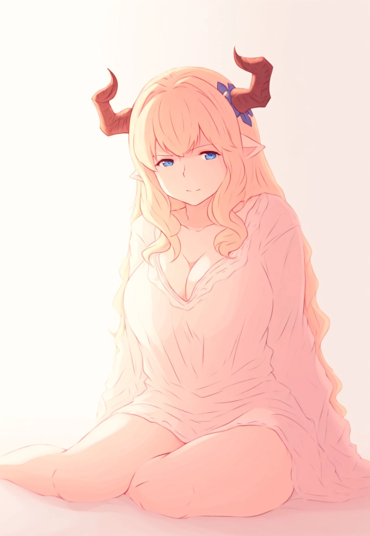 Trigger: 1girl, horns, draph, solo, blonde hair, blue eyes