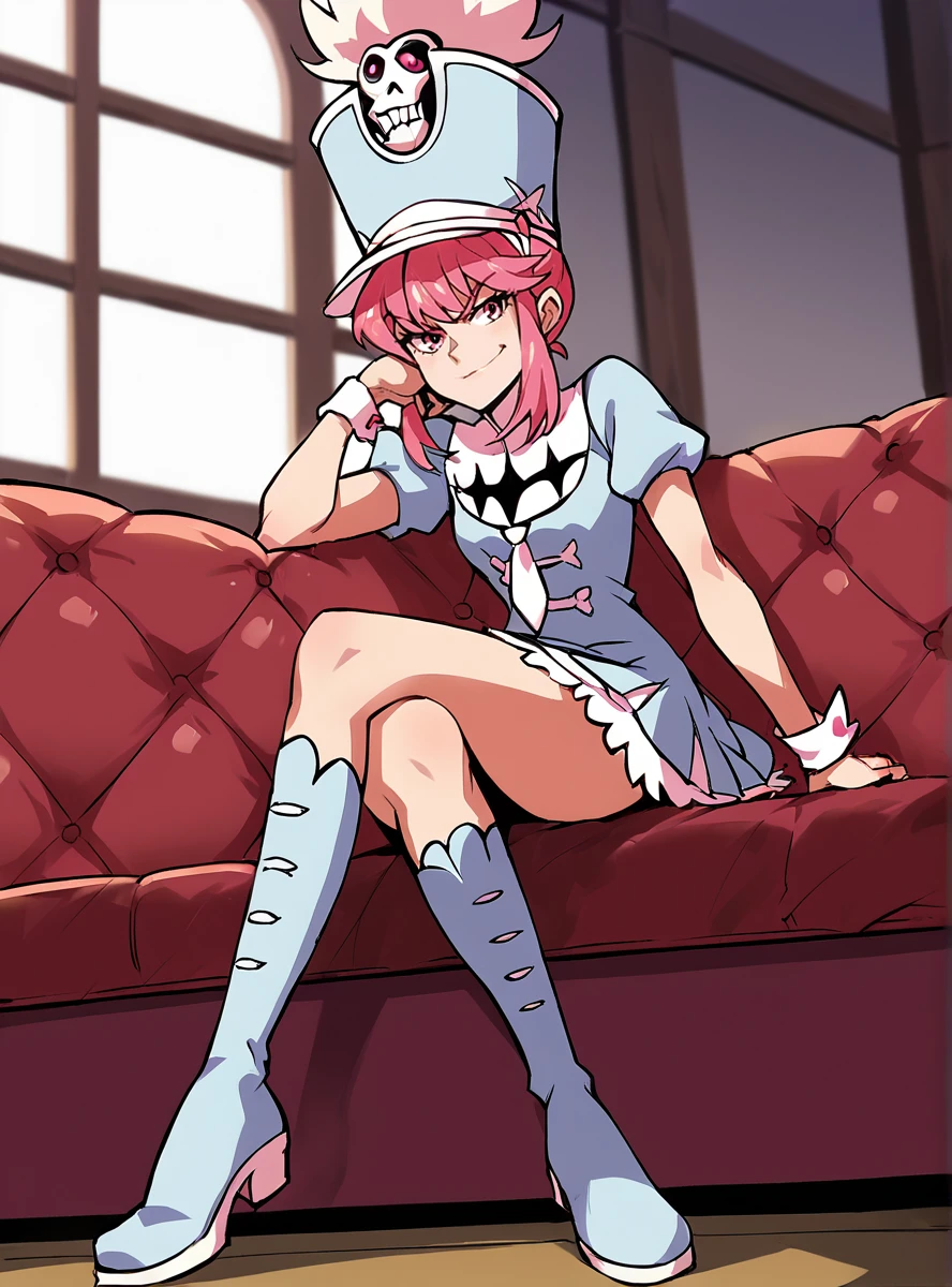 Uniform: shako cap, uniform, dress,indoors,boots,