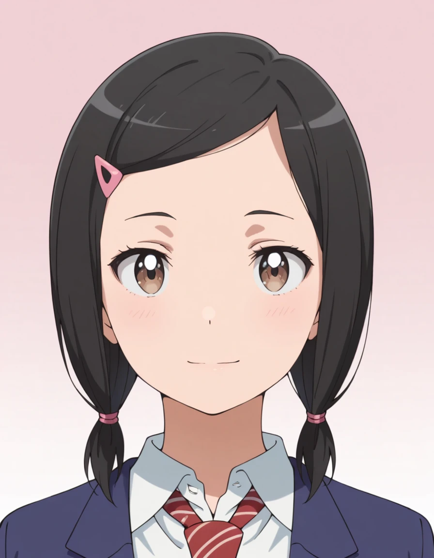 <lora:chisato_fujii-major_2nd_s2-ixl-anime-soralz:1>, chisato fujii (major 2nd), medium hair, black hair, brown eyes, hairclipAppearance - Low-tied sidelocks