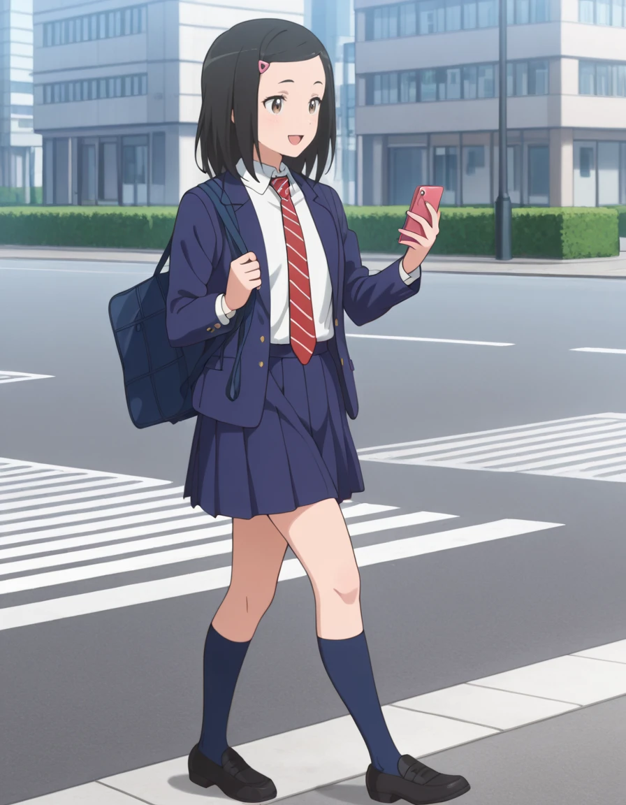 <lora:chisato_fujii-major_2nd_s2-ixl-anime-soralz:1>, chisato fujii (major 2nd), medium hair, black hair, brown eyes, hairclip, alternate hairstyle, low-tied sidelocksOutfit - School Uniform