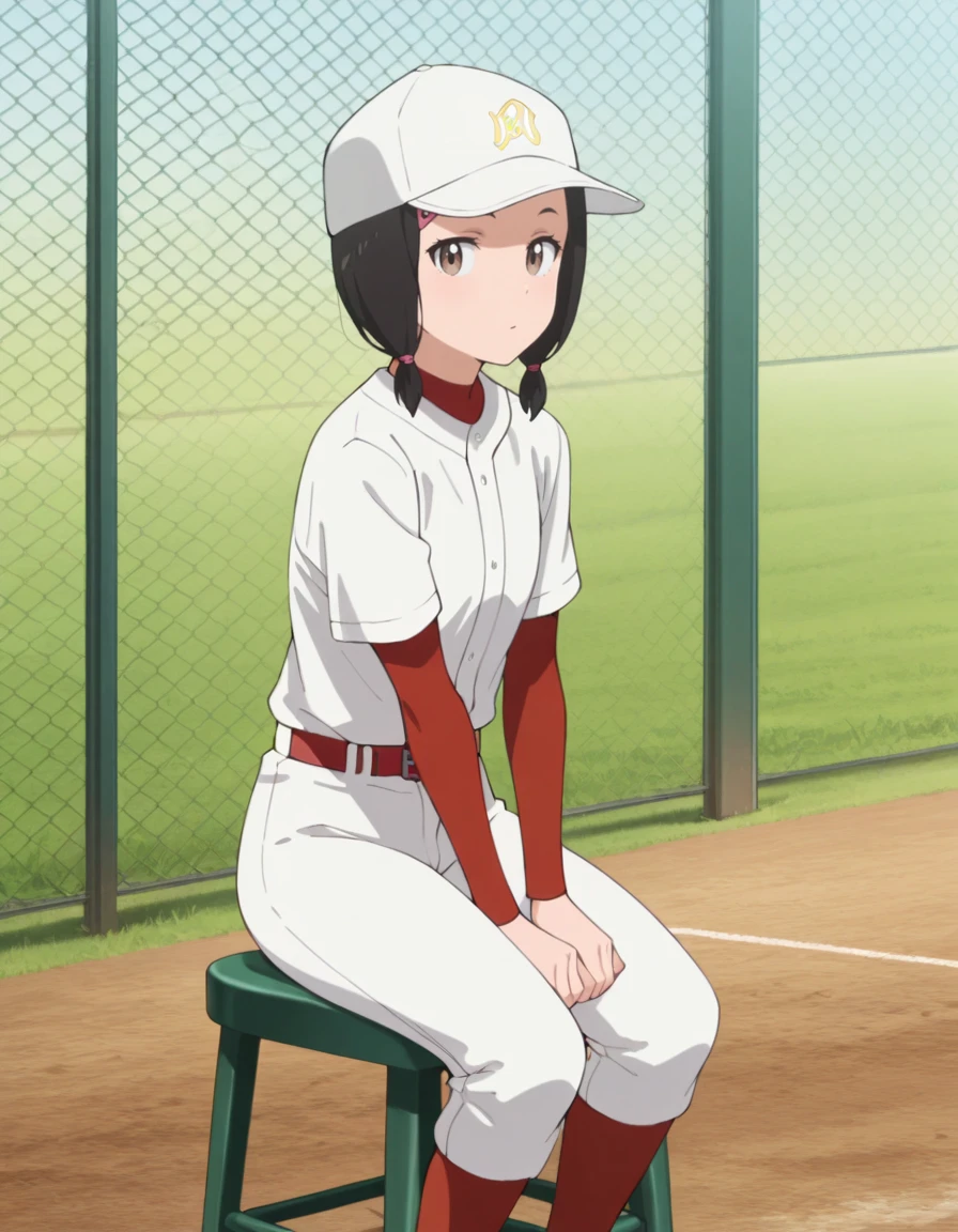 <lora:chisato_fujii-major_2nd_s2-ixl-anime-soralz:1>, chisato fujii (major 2nd), medium hair, black hair, brown eyes, hairclip, alternate hairstyle, low-tied sidelocks