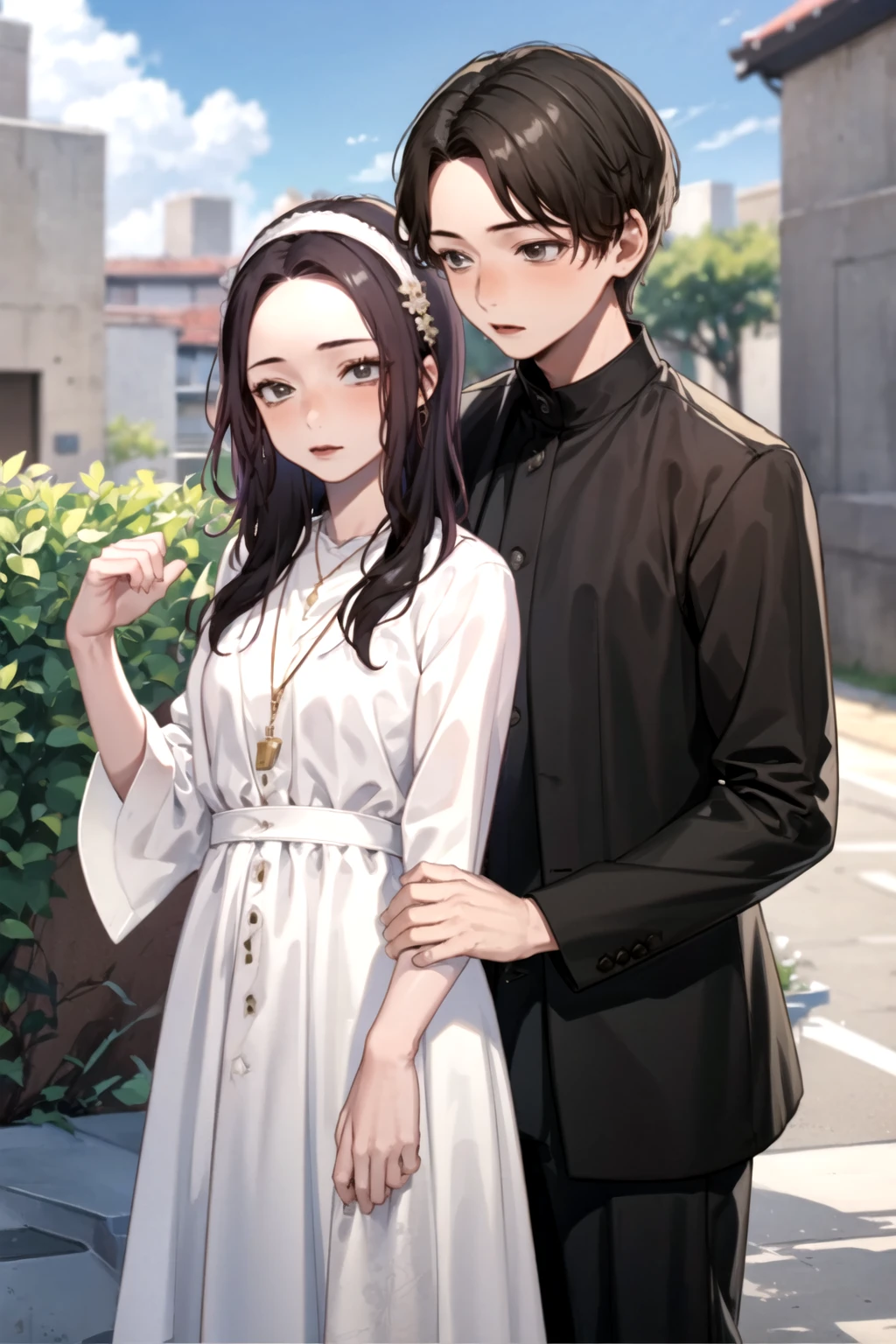 KeiwaMitsume, hetero, 1girl, 1boy, standing, smile, cowboy shot