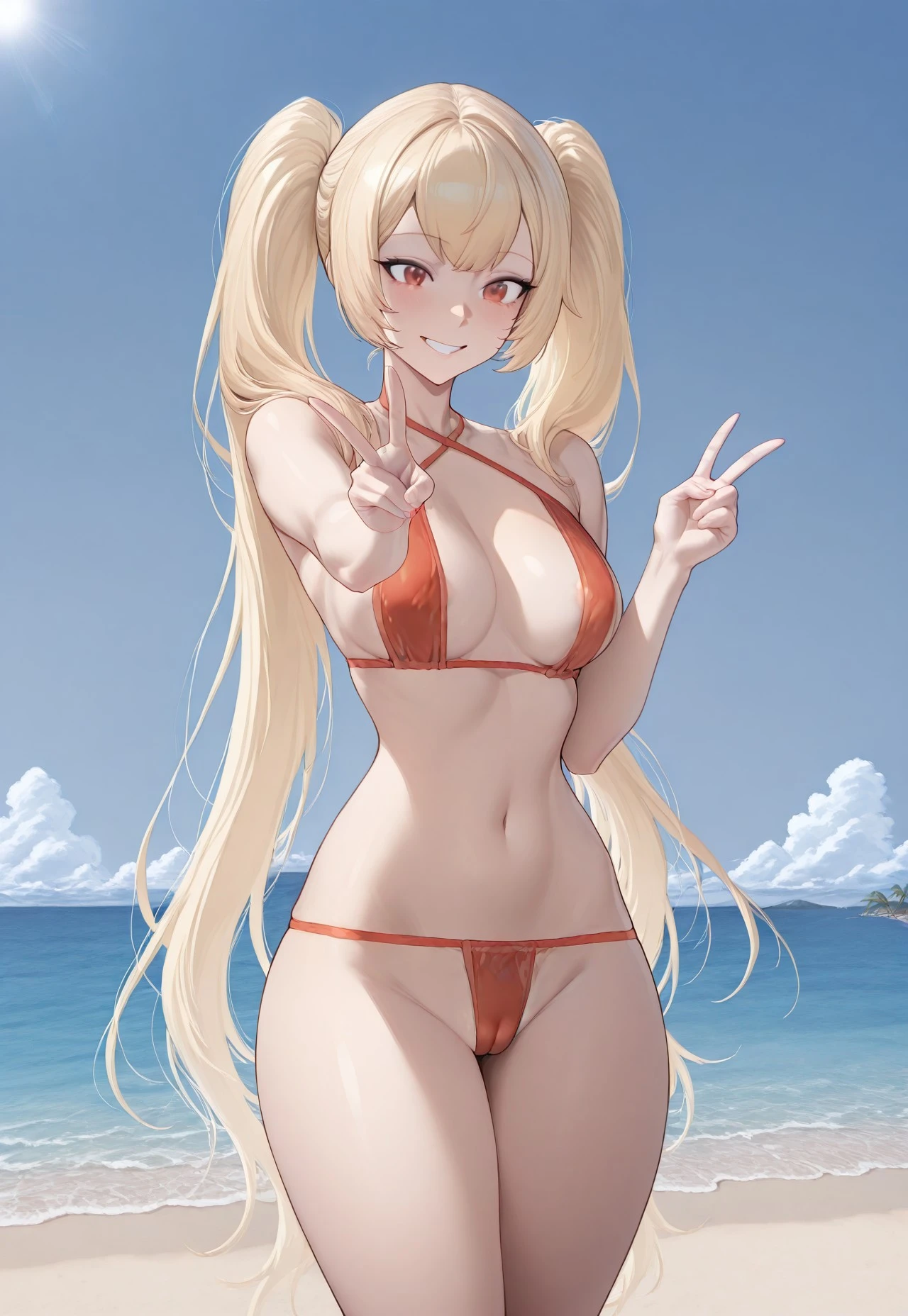 Trigger: 1girl, solo, red eyes, blonde hair, long hair, twintails, bangs,