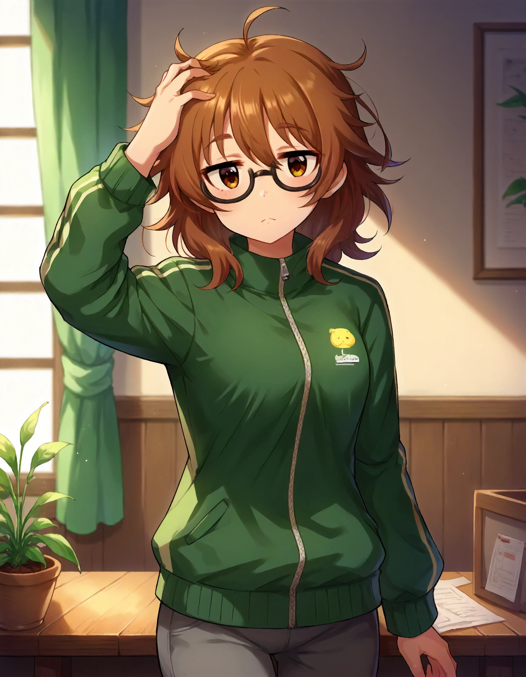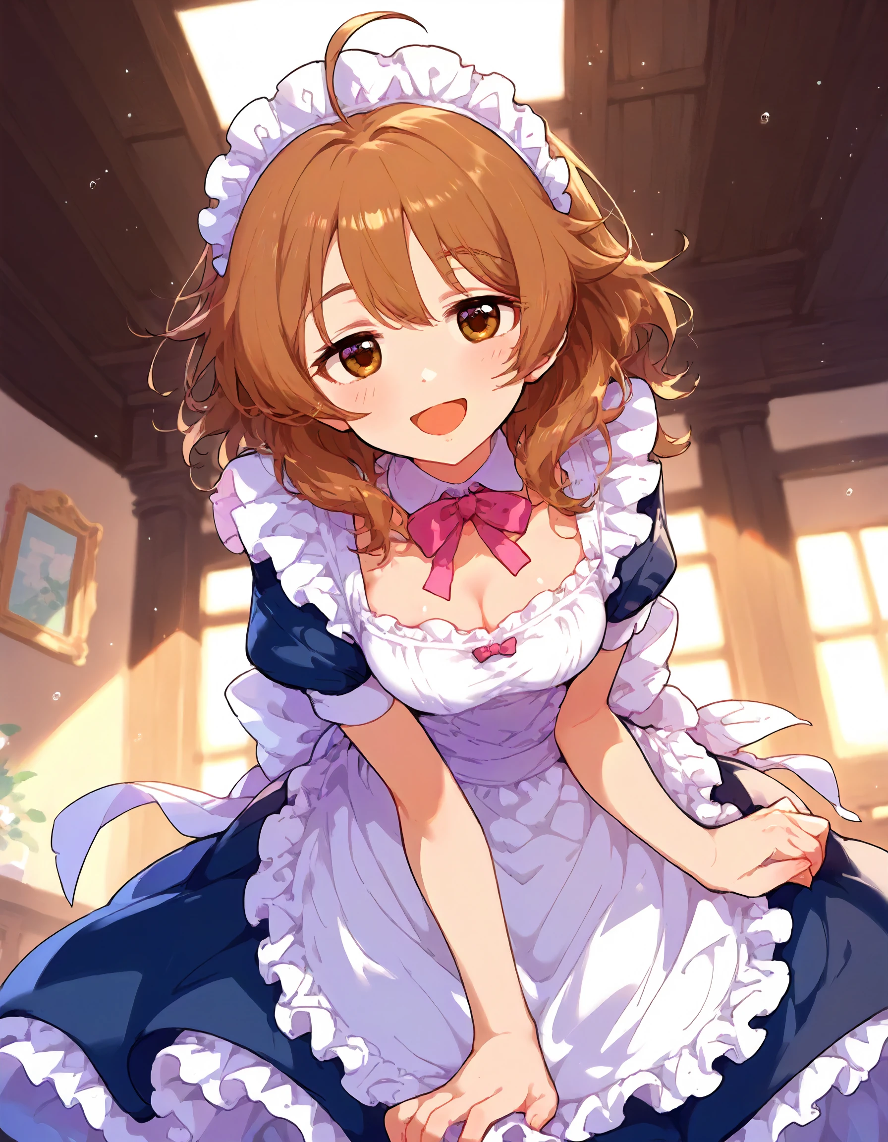 brown hair,medium hair,ahoge,brown eyes