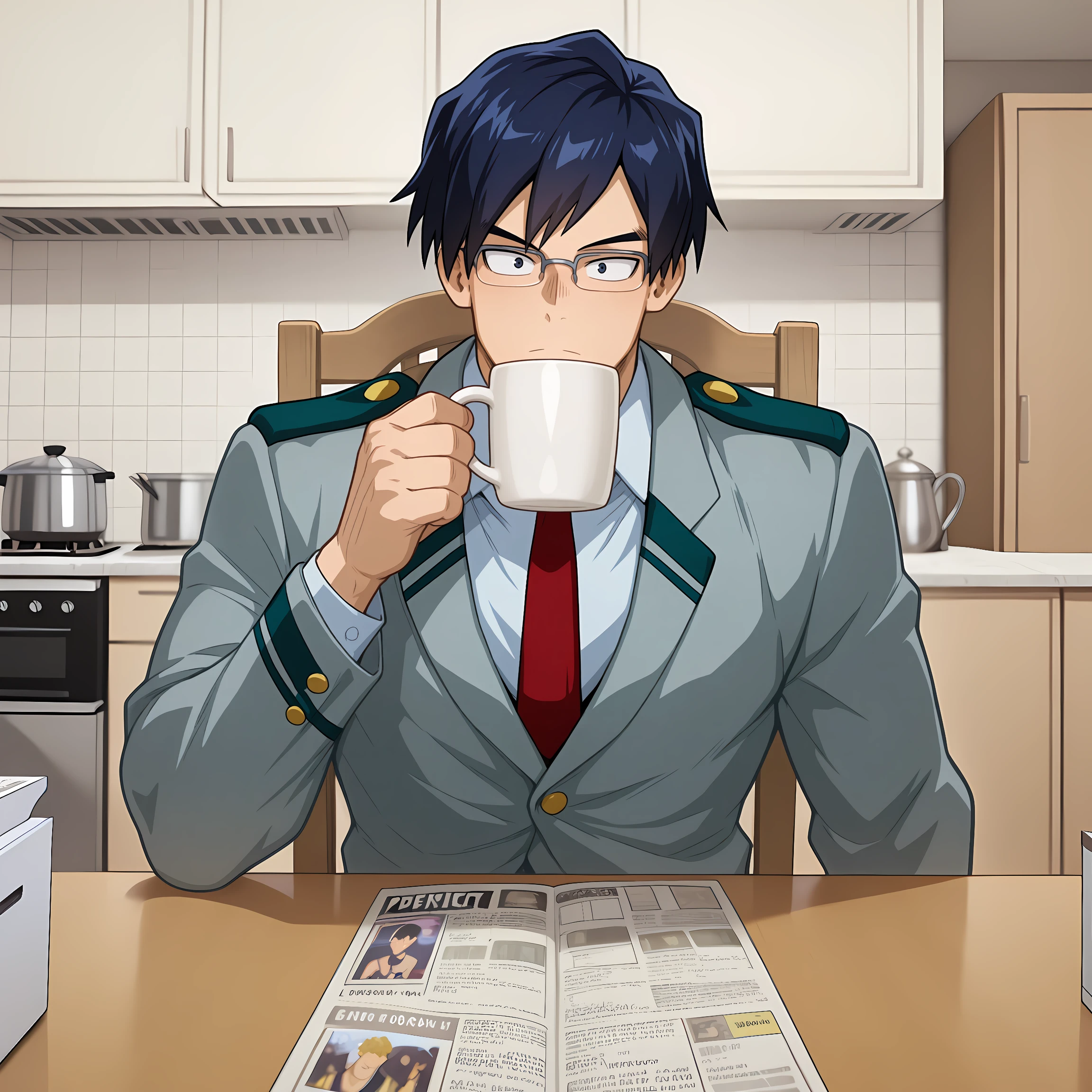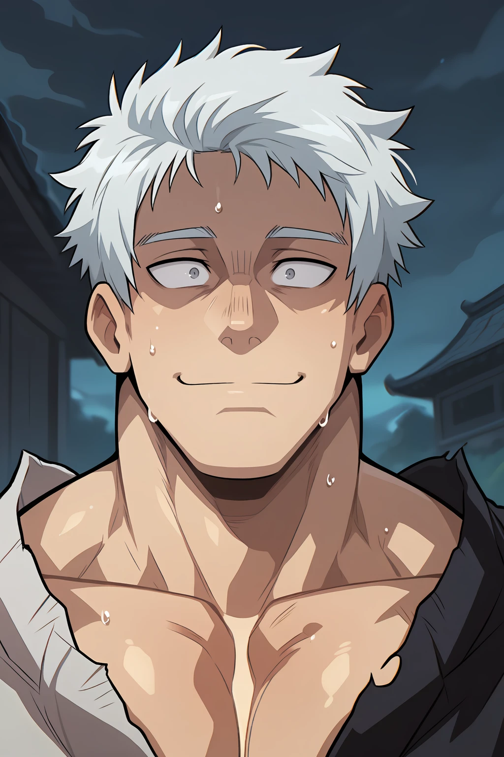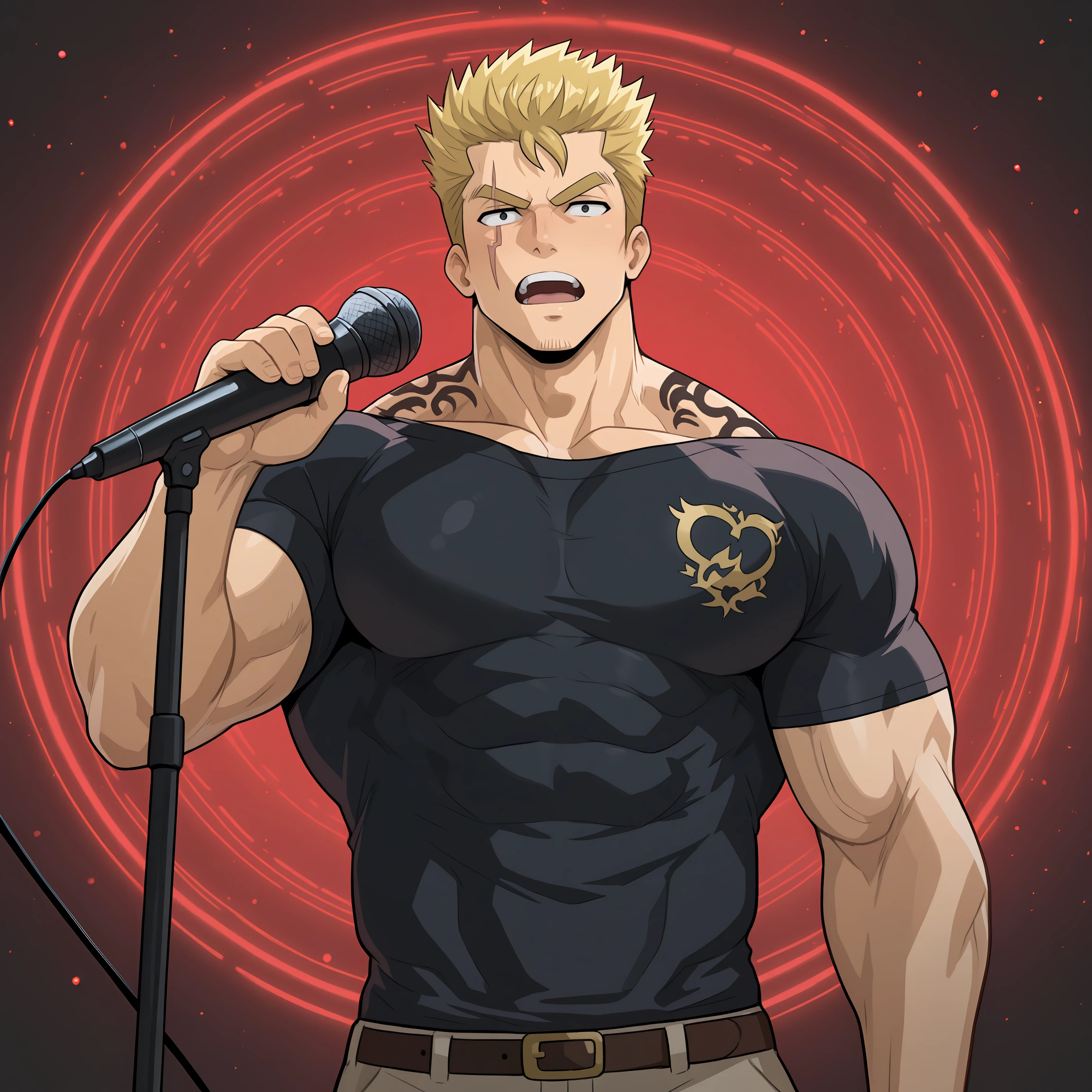 1boy, bara, mature male, black hair, red eyes,
