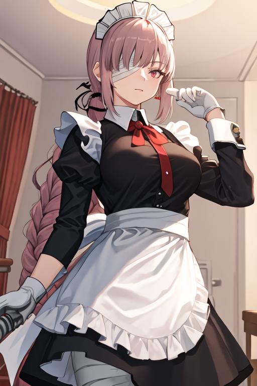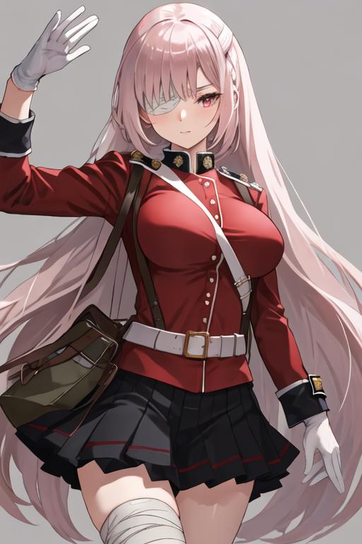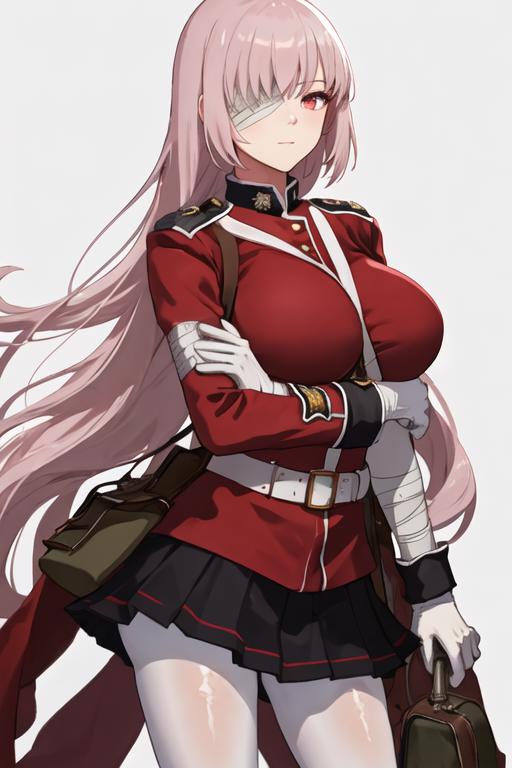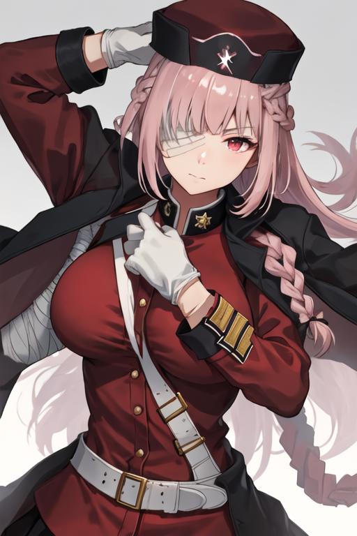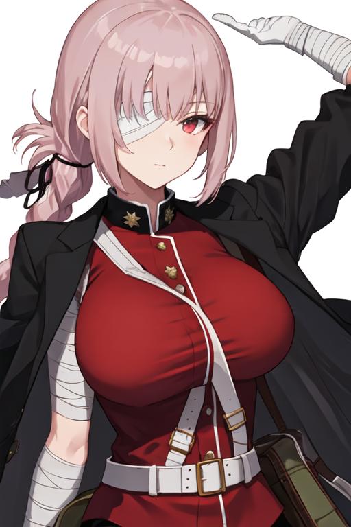 The trigger word is florence_nightingale_fgo, and the recommended tags are best quality, masterpiece, highres, solo, {florence_nightingale_fgo:1.15}, long_hair, pink_hair, red_eyes, breasts, military, large_breasts, bangs, braid, bandage_over_one_eye.
