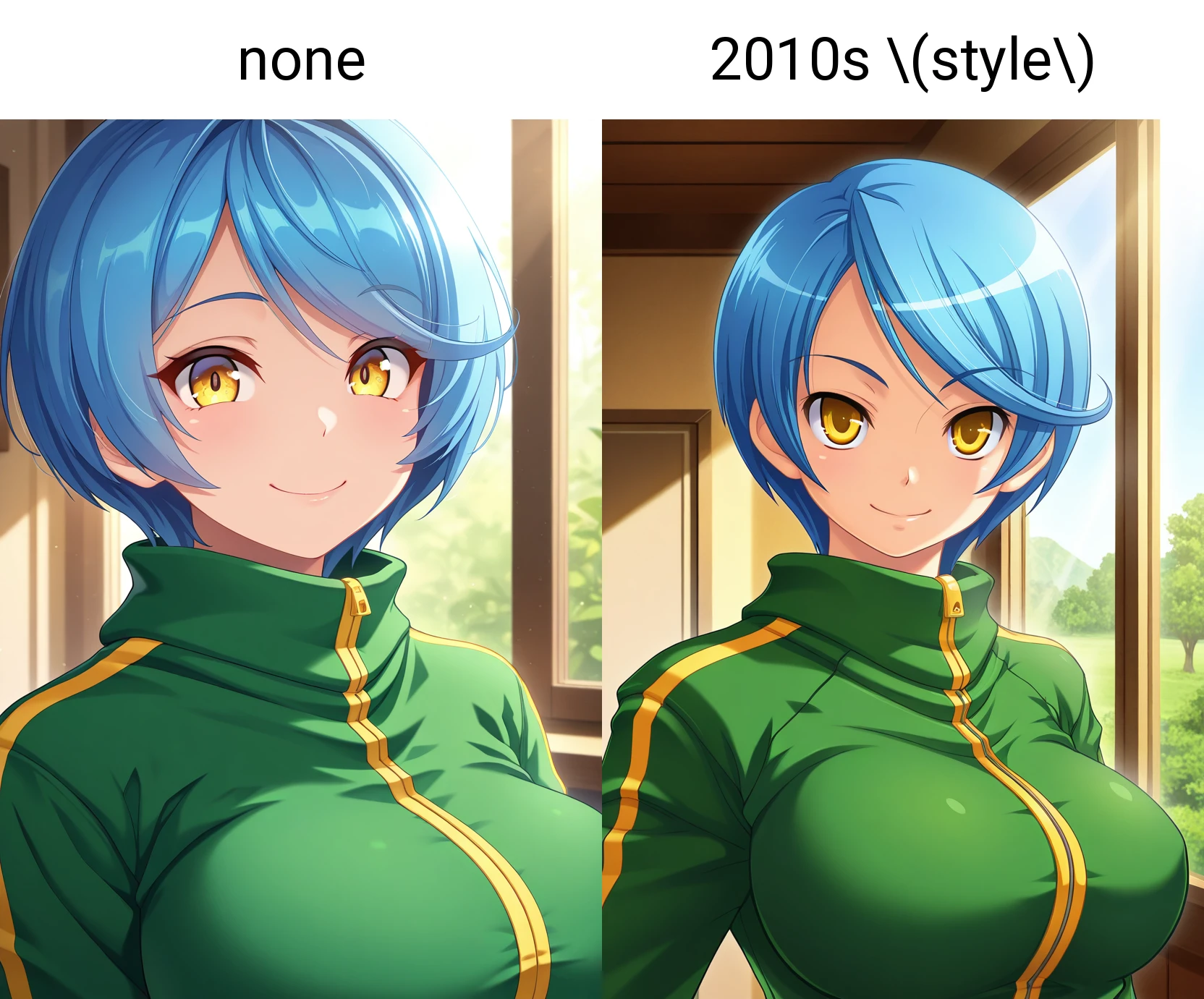 プロンプトに "2010s (style)" を使った方が、ゲームの雰囲気に近くなります。