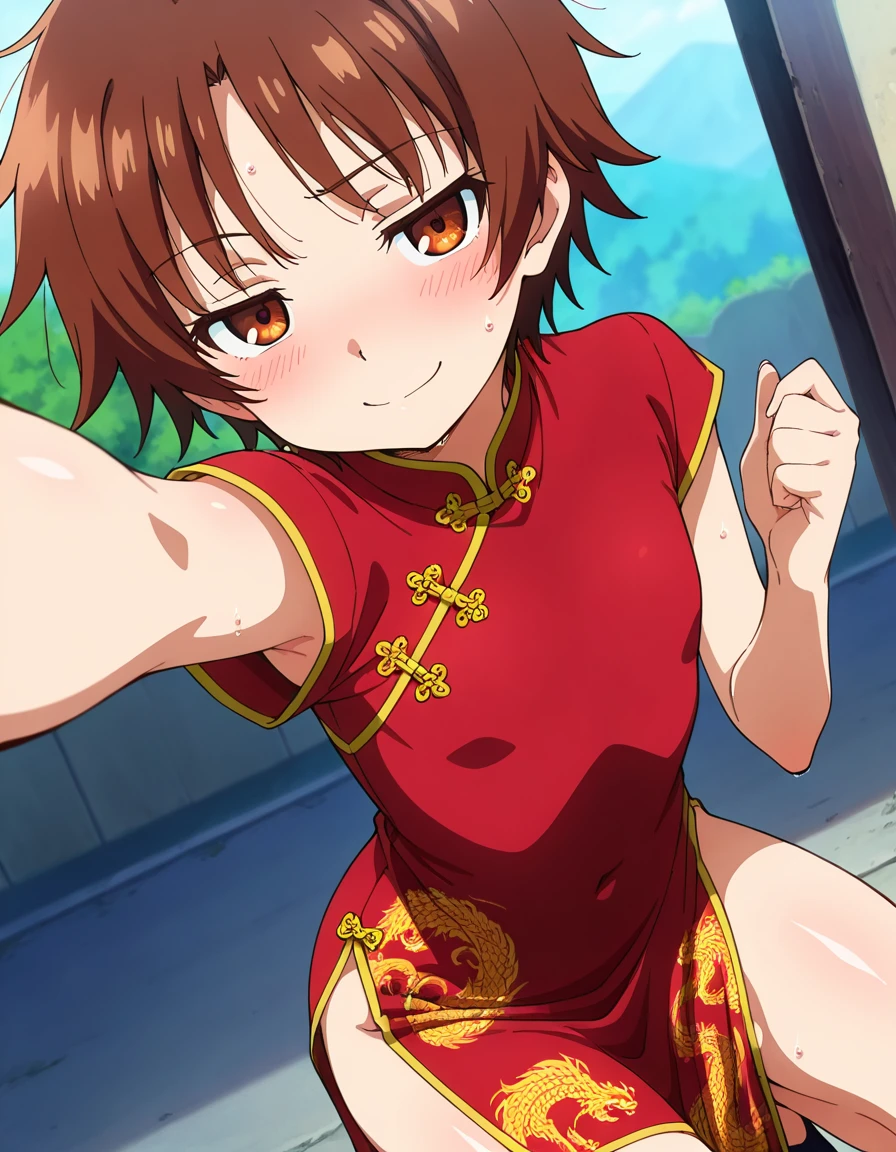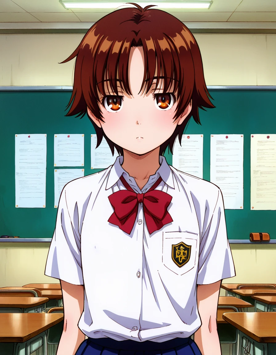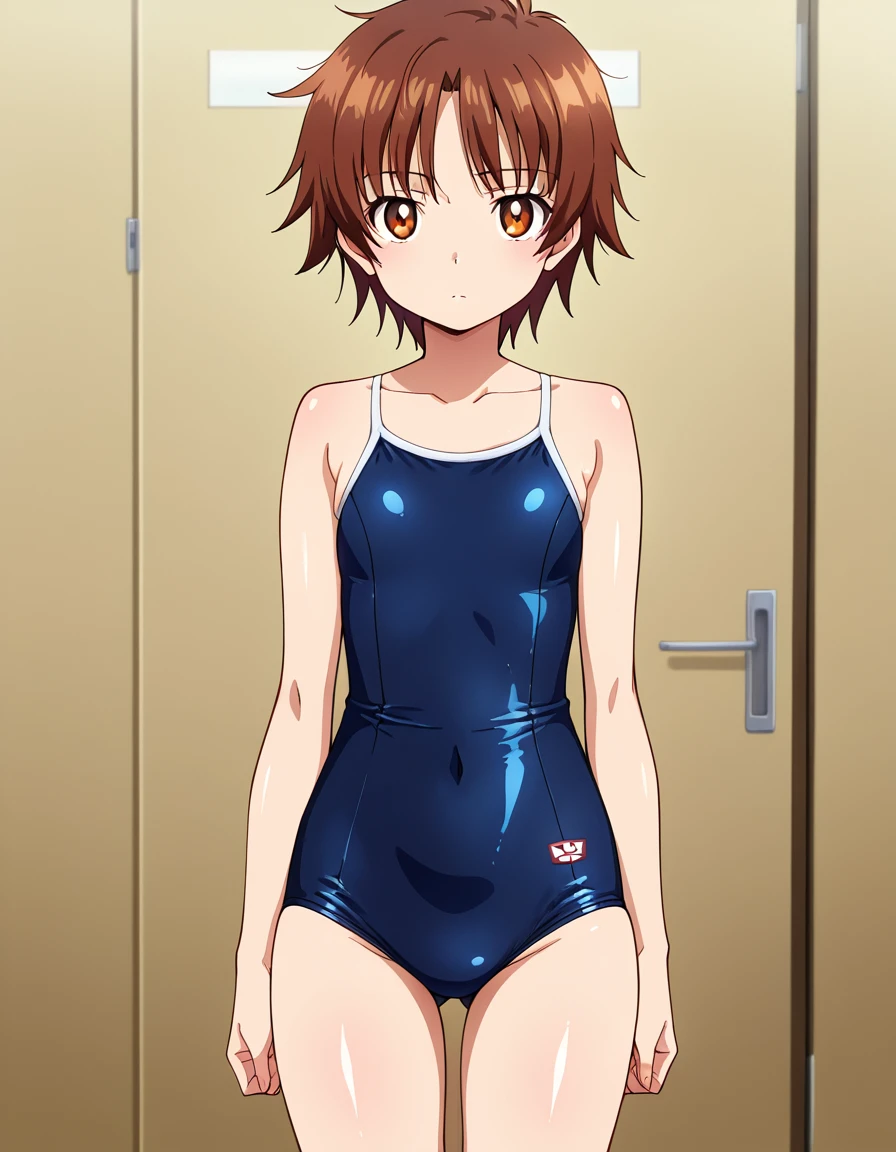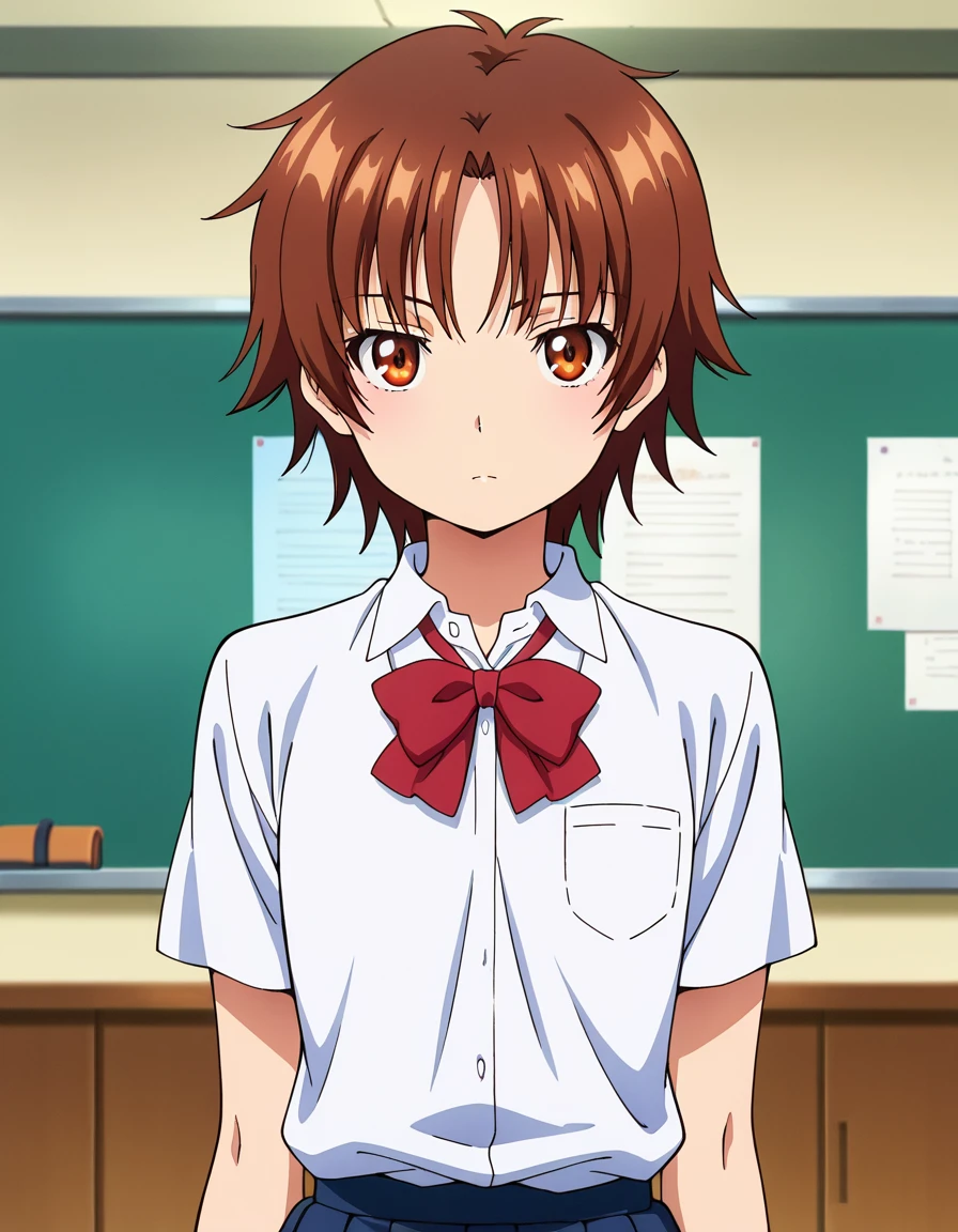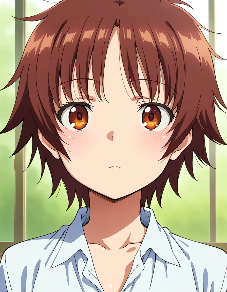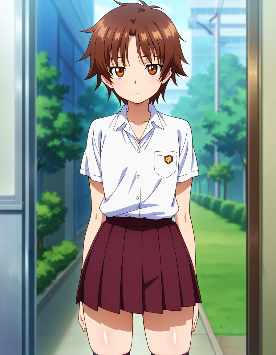 yoshida chiaki, brown eyes, brown hair, short hair, flat chest,