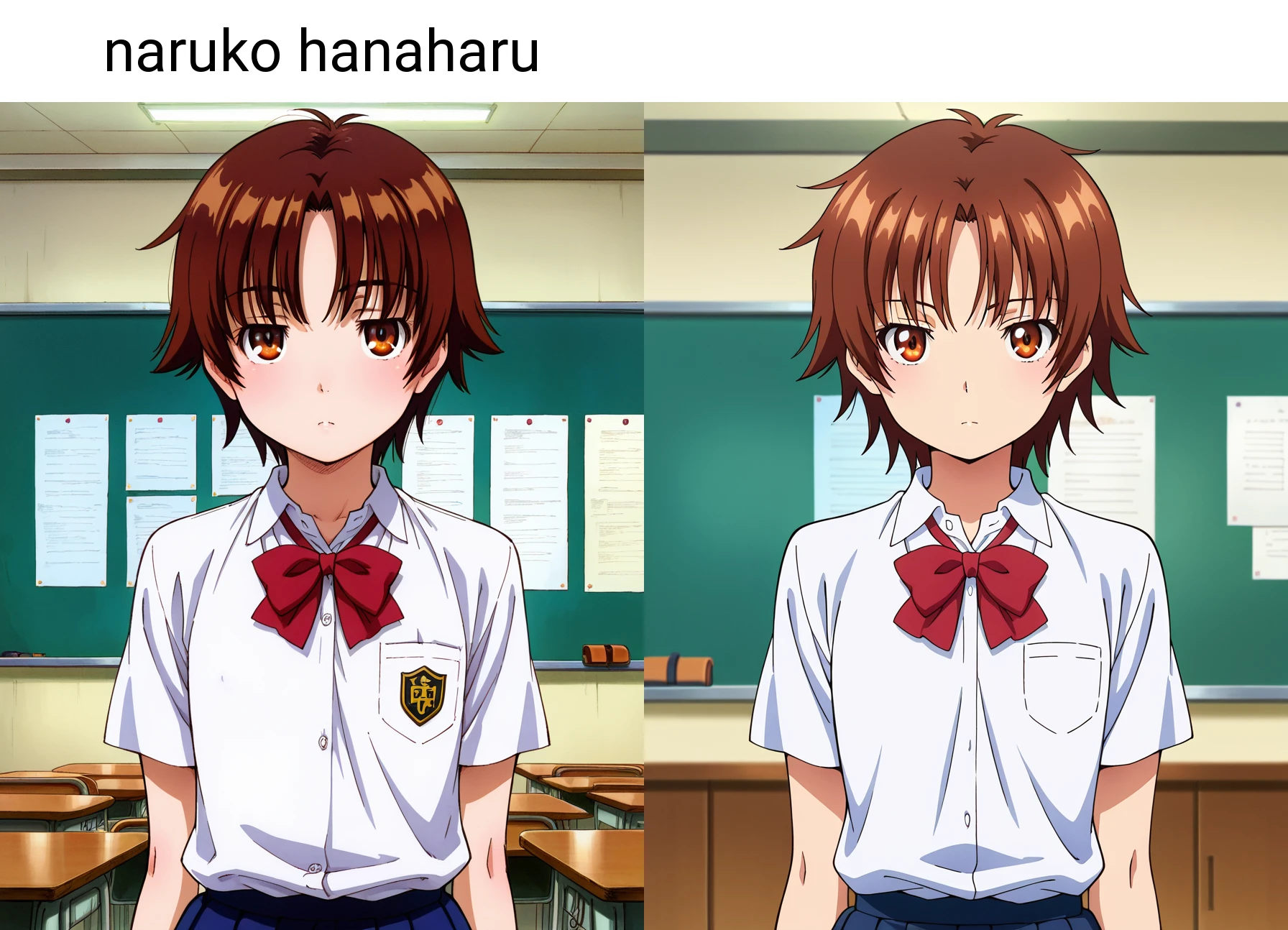 You might want to try using "naruko hanaharu" in the prompt, as it changes the overall atmosphere.