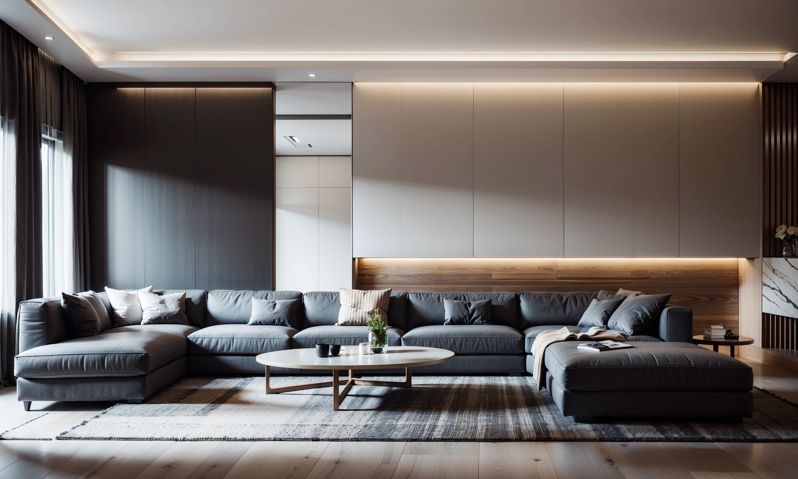 A LORA model of a modern living room made in my spare time. The style is more directional. Good results can be achieved by running straight or in conjunction with CN. The color scheme fits the high-contrast style of the training set.